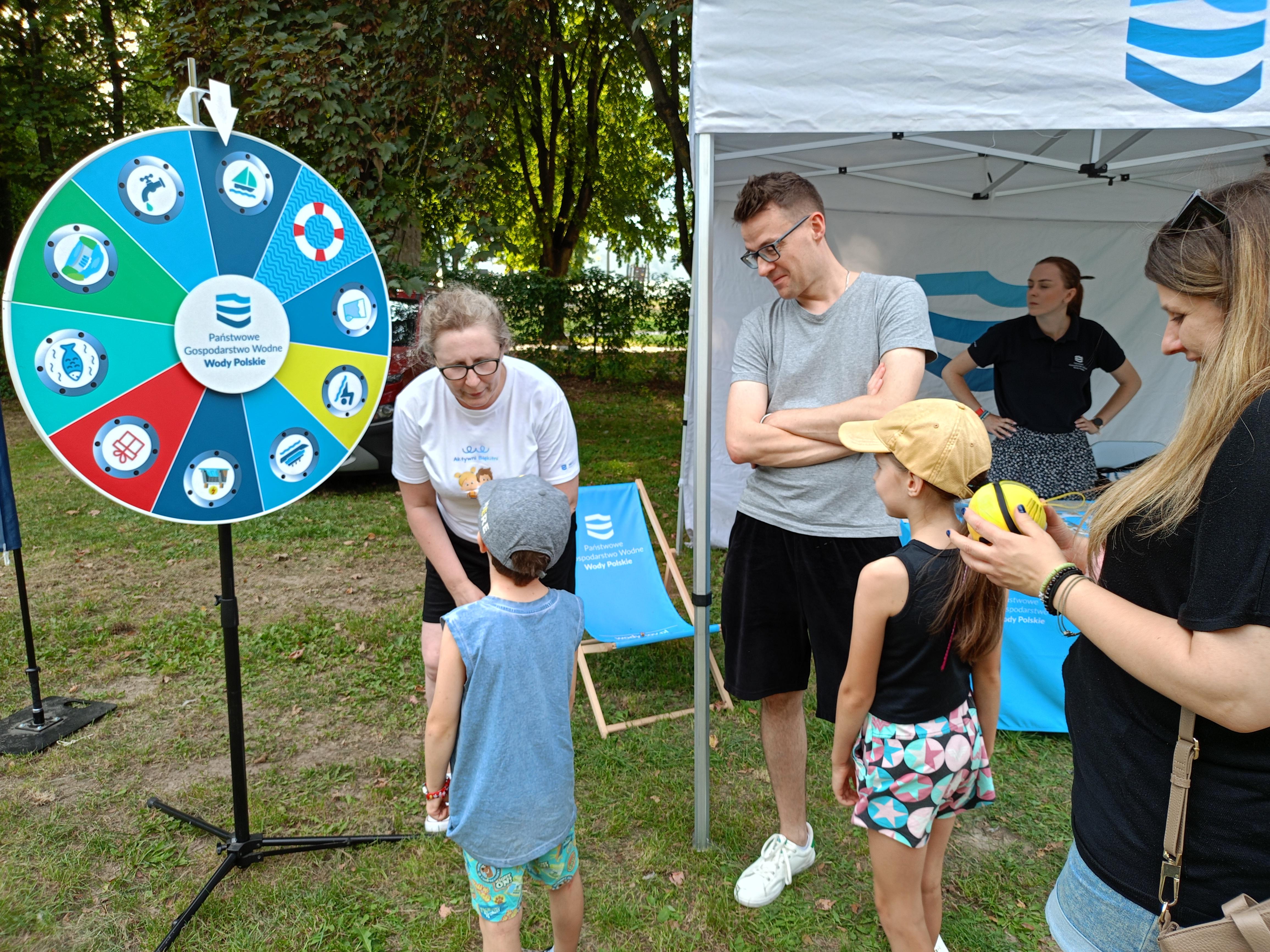 Wydarzenie to miało szczególne znaczenie dla RZGW w Lublinie, ponieważ odbyło się nad Zalewem Zemborzyckim, obchodzącym w bieżącym roku 50-lecie istnienia, a którego planowana modernizacja jest jedną z najważniejszych inwestycji Wód Polskich. Nasze stoisko tradycyjnie cieszyło się dużą popularnością, zwłaszcza wśród najmłodszych. Dzięki konkursom w ,,Wodnym Kole Fortuny” mogli sprawdzić swoją wiedzę na temat wody i wygrać ciekawe nagrody oraz natomiast rodziców, a szczególnie nauczycieli, informowaliśmy o kolejnej edycji programu edukacyjnego "Aktywni Błękitni - szkoła przyjazna wodzie”.
