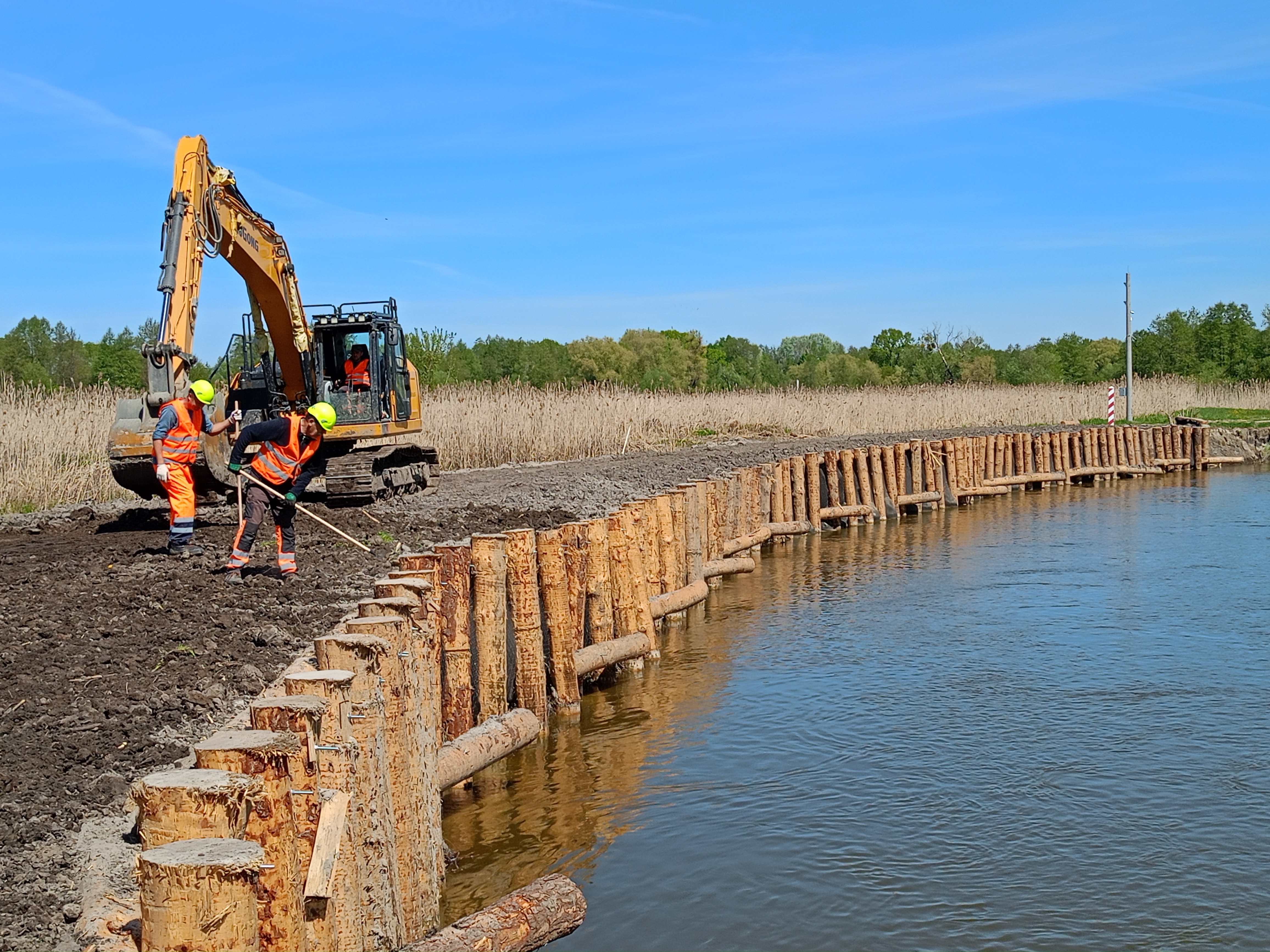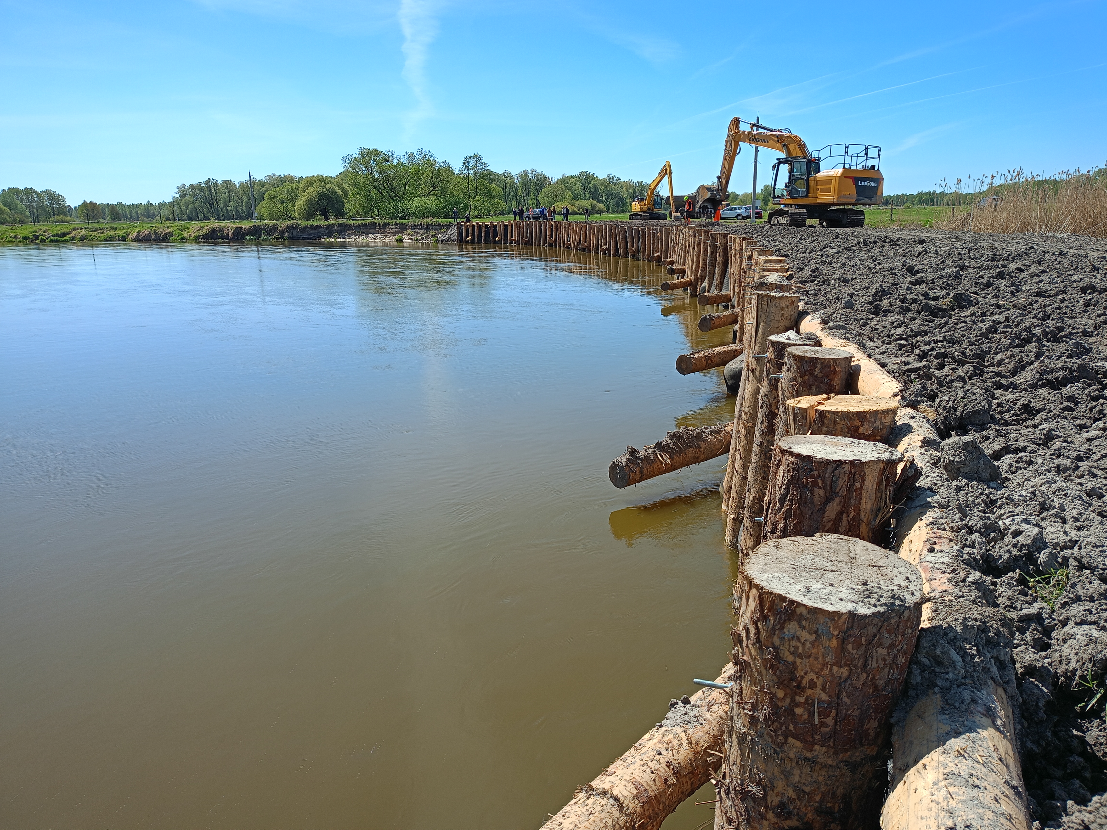 Przed nami tylko kosmetyczne prace porządkowe i formalnie kończymy zabezpieczenie wyrwy w skarpie rzeki Bug w Jabłecznej. Postępująca, naturalna erozja spowodowała znaczne osłabienie struktury brzegu na długości 100 m do tego stopnia, że przy bardzo wysokim stanie wody mogłoby to grozić wlaniem się Bugu do starorzecza i nawet odcięciem drogi dojazdowej do monasteru św. Onufrego.
