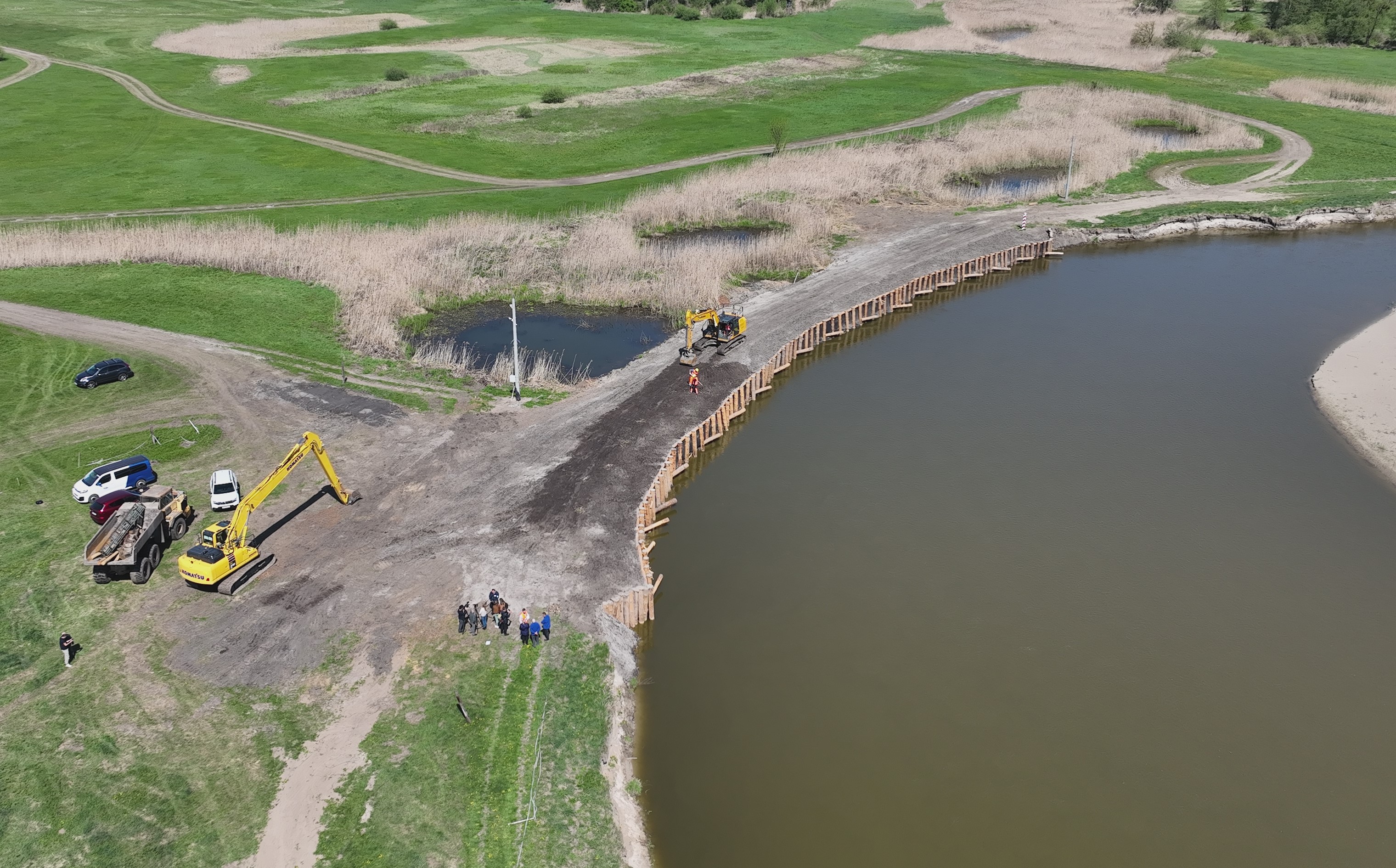 „Na bieżąco monitorujemy stan Bugu po polskiej stronie i reagujemy na ewentualne naruszenia brzegu mogące zagrozić okolicznym mieszkańcom i ich nieruchomościom oraz infrastrukturze publicznej, a także licznym na tym terenie zabytkom” - powiedział zgromadzonym w Jabłecznej dziennikarzom dyrektor naszego RZGW Marcin Troć - „Miejsca najbardziej uszkodzone traktujemy priorytetowo i dokonujemy napraw stosownie do potrzeb, wymagań technicznych oraz zgodnie z katalogiem dobrych praktyk w zakresie robót hydrotechnicznych i prac utrzymaniowych”.