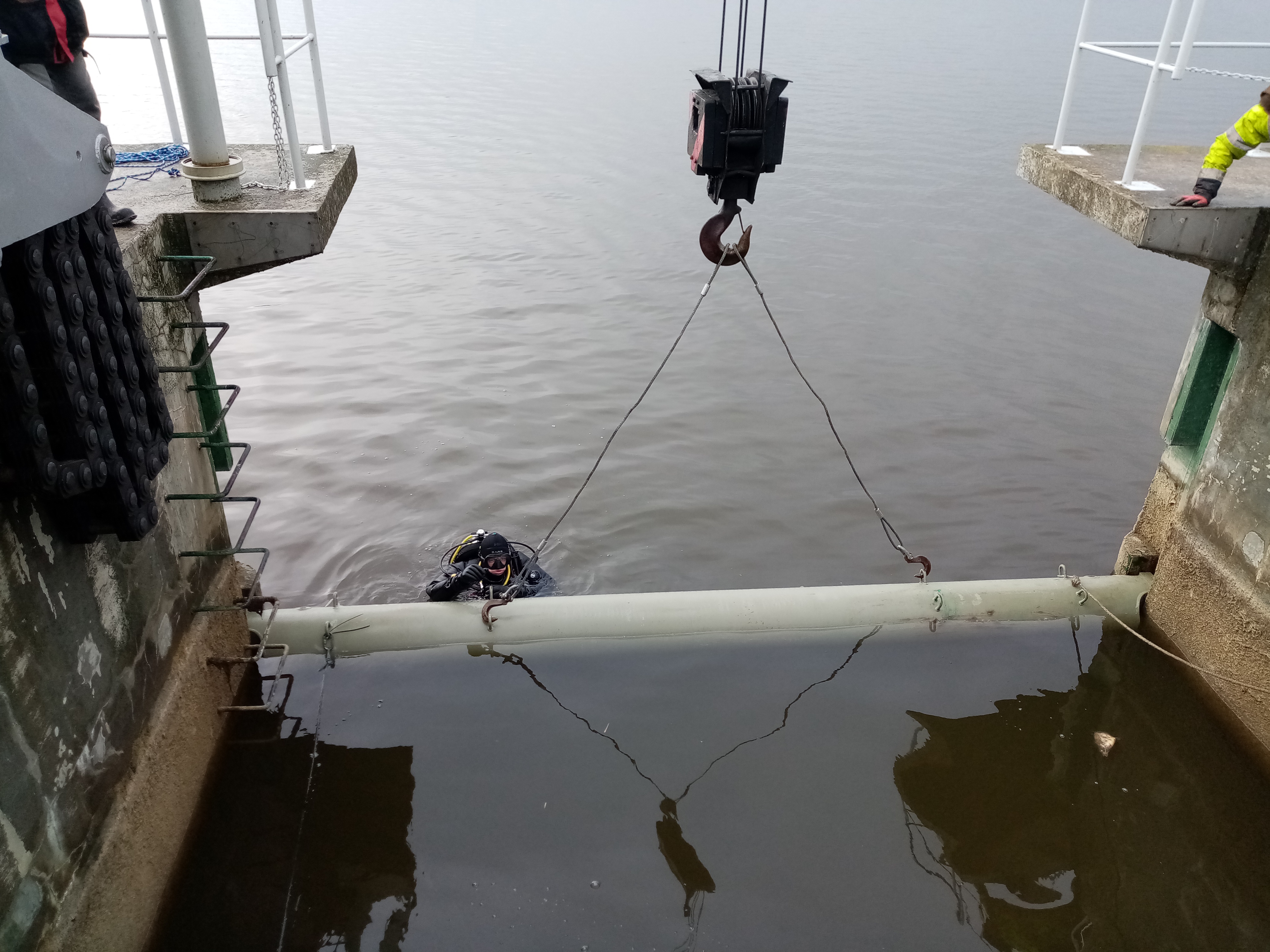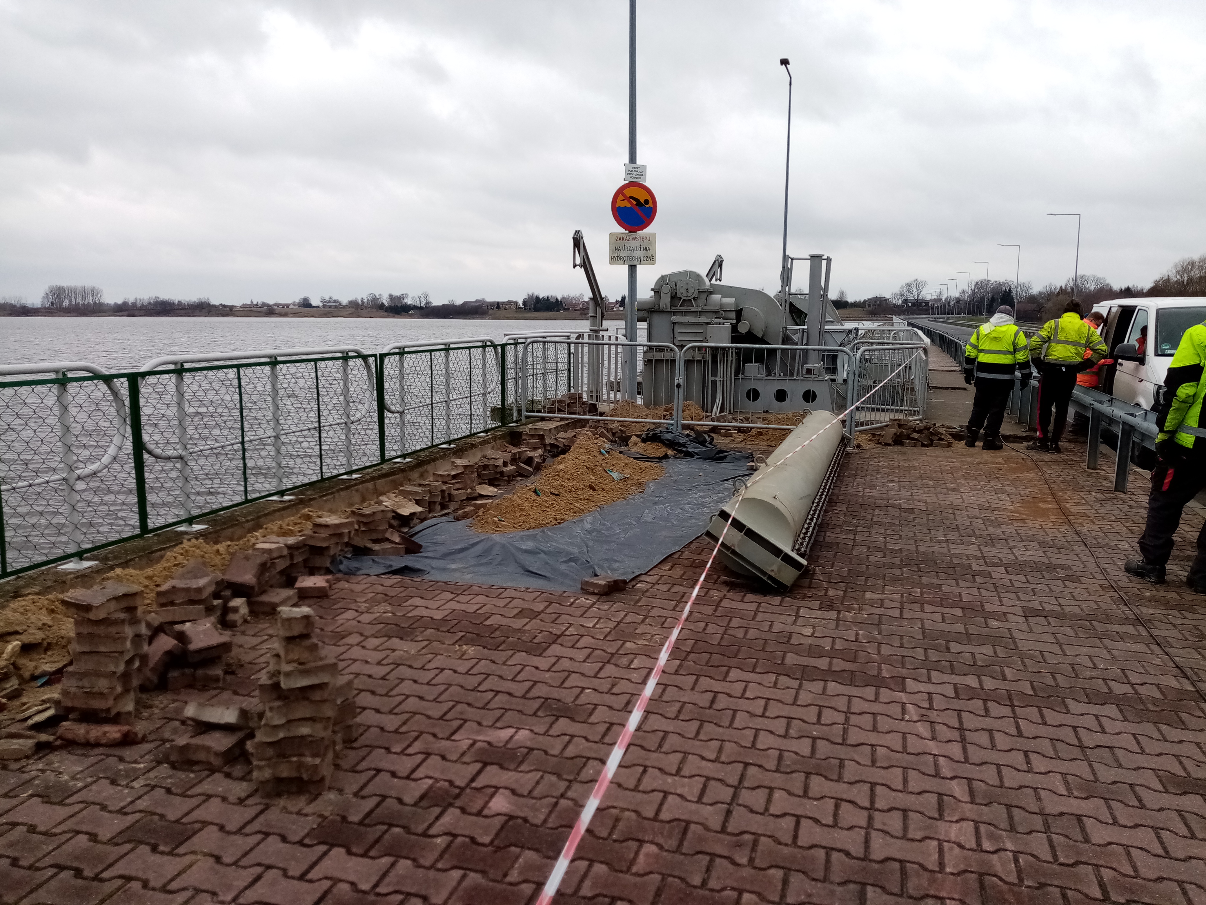 Aktualnie wykonywane są prace montażowe związane z układaniem nowych linii kablowych zasilających silniki elektryczne jazu.