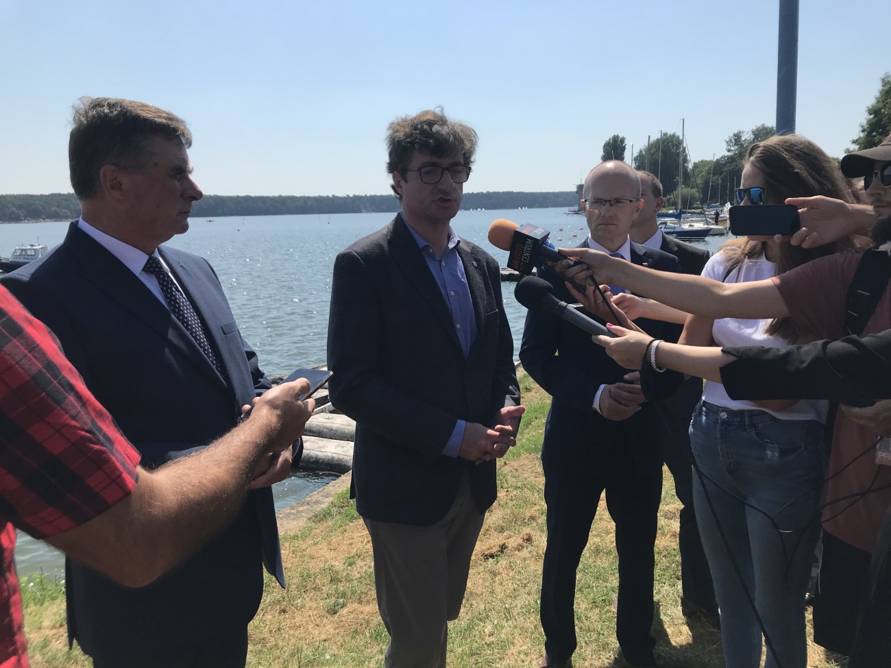 Prezes PGW Wody Polskie Przemysław Daca, Wojewoda Lubelski Lech Sprawka, Członek Zarządu Województwa Lubelskiego Sebastian Trojak, Zastępca Dyrektora Wydziału Ochrony Środowiska Urzędu Miasta Lublin Blanka Rdest – Dudak, Prezes WFOŚiGW w Lublinie Paweł Gilowski, a także Radni Rady Miasta Lublin Tomasz Pitucha i Piotr Popiel wzięli udział w czwartkowej konferencji prasowej poświęconej realizacji projektu „Rewitalizacja i przebudowa Zalewu Zemborzyckiego”.