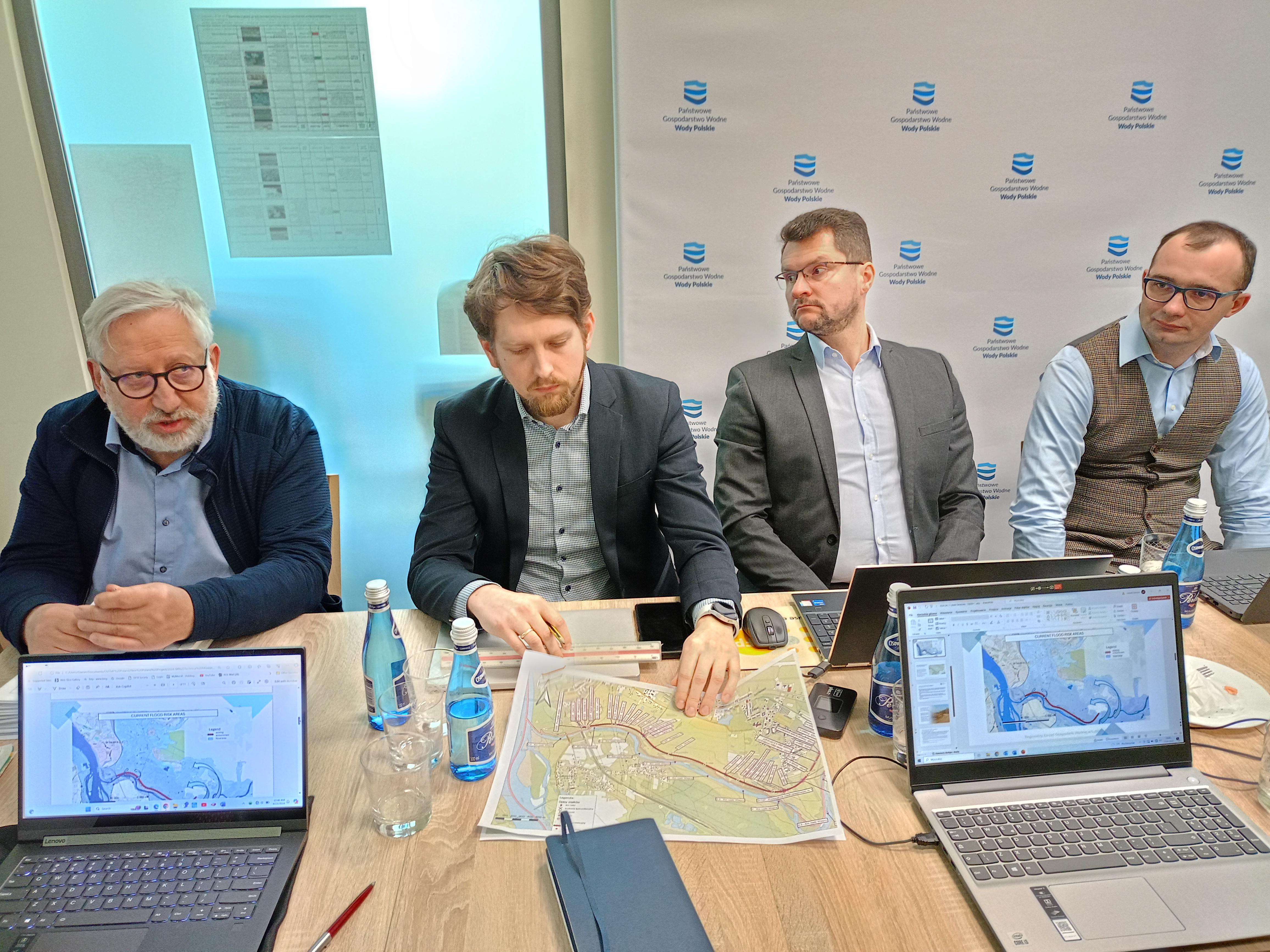Uczestnicy spotkania, w tym przedstawiciele Biura Koordynacji Projektu z Państwowego Gospodarstwa Wodnego „Wody Polskie” w Warszawie i biura projektowego, mieli również okazję zapoznać się z obecną sytuacją przeciwpowodziową w miejscu planowanej inwestycji na Wieprzu w Dęblinie.