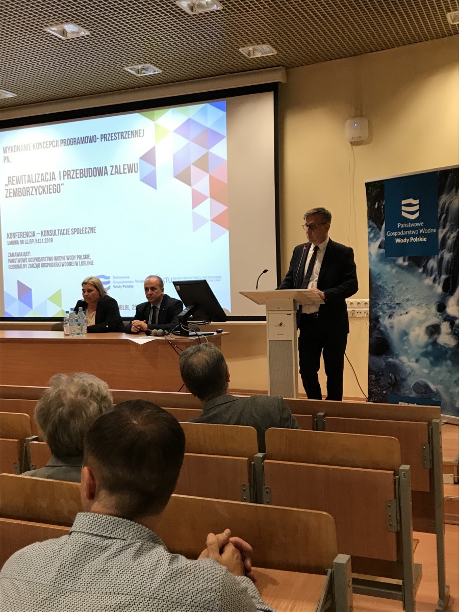 Dnia 21 października br. PGW Wody Polskie, Regionalny Zarząd Gospodarki Wodnej w Lublinie zorganizował na Wydziale Nauk o Ziemi i Gospodarki Przestrzennej UMCS spotkanie konsultacyjne z Radnymi Rady Miasta Lublin oraz przedstawicielami Rad Dzielnic. Spotkanie miało na celu zapoznanie uczestników z propozycjami wariantów koncepcyjnych realizacji projektu pn.: „Rewitalizacja i przebudowa Zalewu Zemborzyckiego”. Podczas konsultacji przedstawione zostały i szczegółowo omówione wszystkie wariantowe rozwiązania dla realizacji niniejszego przedsięwzięcia. Spotkanie zakończyło się szeroką i merytoryczną dyskusją dot. wyboru najkorzystniejszego dla mieszkańców Lublina wariantu przeprowadzenia całego zadania.