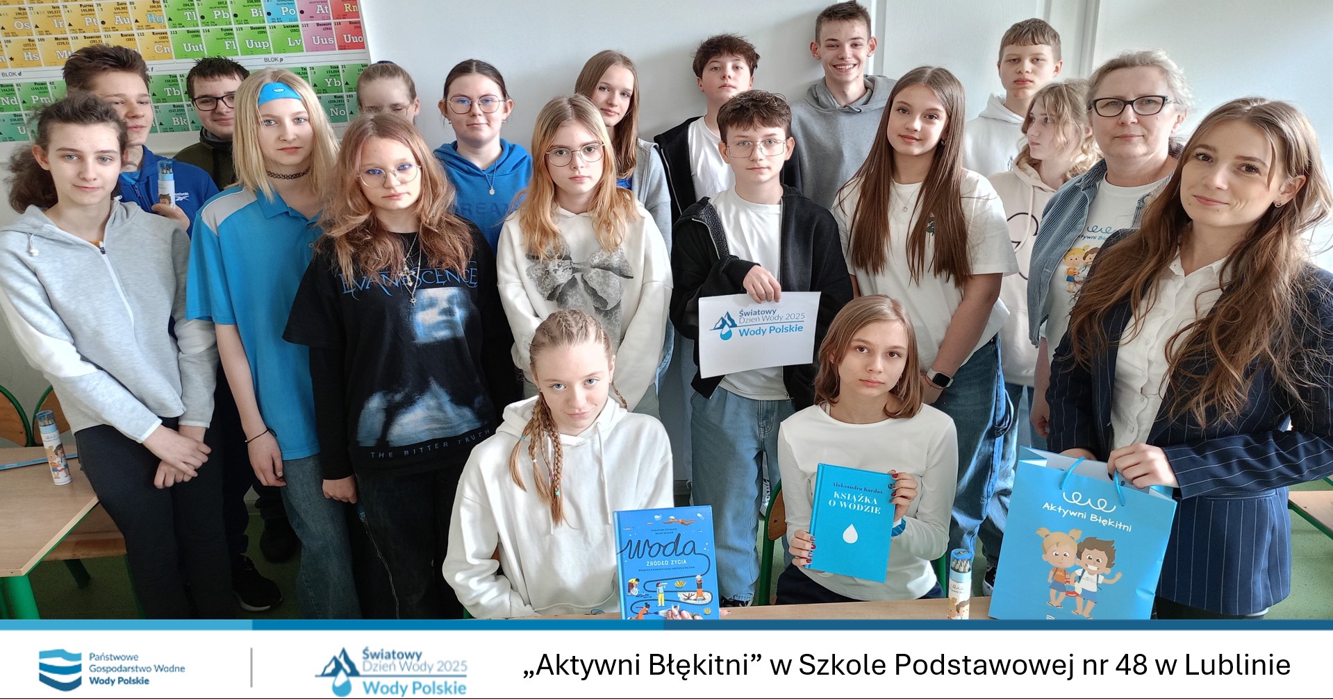 W Szkole Podstawowej nr 48 im. Józefa Piłsudskiego w Lublinie w dwóch klasach przeprowadziliśmy lekcje o ochronie i oszczędzaniu wody w nietypowej konwencji. Rozpoczęliśmy od „wodnego teleturnieju”, następnie porozmawialiśmy o znaczeniu hasła tegorocznej edycji Światowego Dnia Wody- „Ocalmy lodowce”. W drugiej części zajęć wszyscy skupili się na rozwiązywaniu - z powodzeniem - wodnych zagadek, krzyżówek i rebusów.
