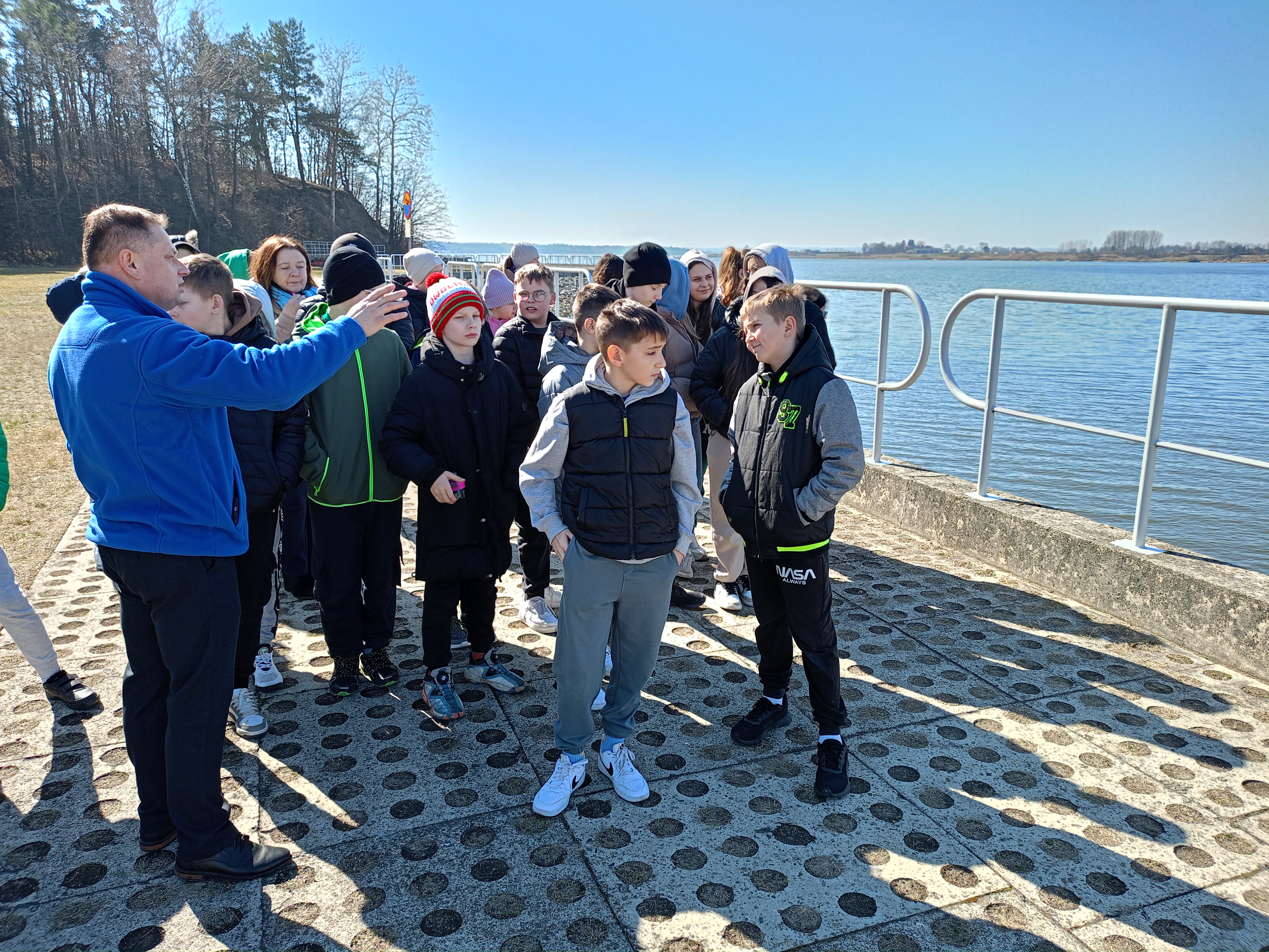 Uczniowie Szkoły Podstawowej im. Jana Króla w Nieliszu gościli natomiast na naszym obiekcie hydrotechnicznym, gdzie mieli okazję poznać historię budowy zalewu w Nieliszu. Nieodzownym punktem spotkania było oczywiście zwiedzanie zapory, w trakcie którego poznali podstawowe parametry techniczne tej budowli oraz ciekawostki związane z jej funkcjonowaniem. Na finał tej niepowtarzalnej lekcji sprawdziliśmy nabytą wiedzę Aktywnych Błękitnych z Nielisza przy rozwiązywaniu zagadek i rebusów oraz - jakżeby inaczej - przy naszym Wodnym Kole Fortuny.