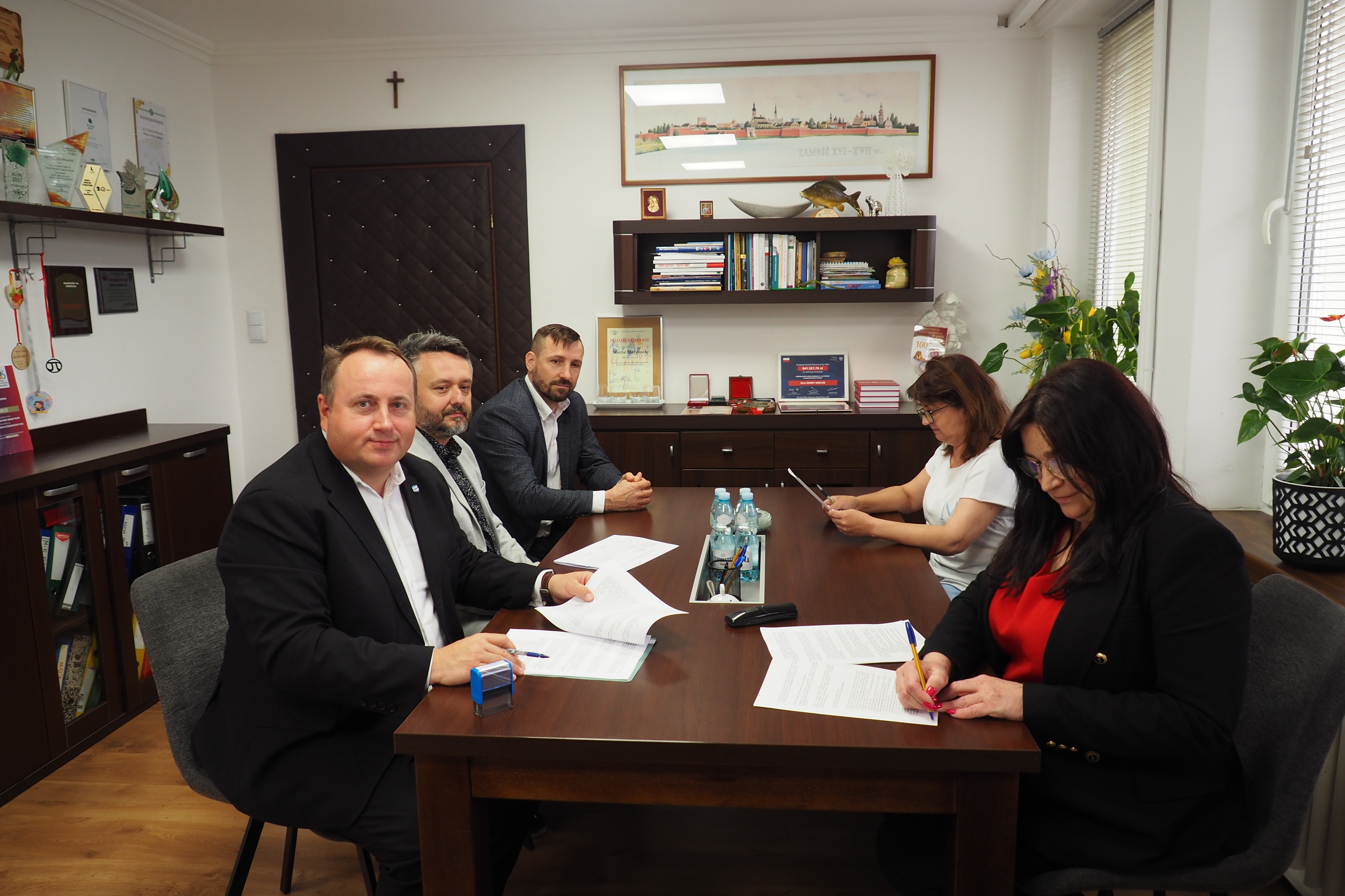 Dokument podpisali Marta Małyszek, wójt Mircza i Marcin Troć, dyrektor naszego RZGW. Wydarzeniu uczestniczyli również Anna Płoszaj, Skarbnik Gminy i Sławomir Lenart, Zastępca Dyrektora ds. Organizacyjno-Ekonomicznych RZGW w Lublinie.