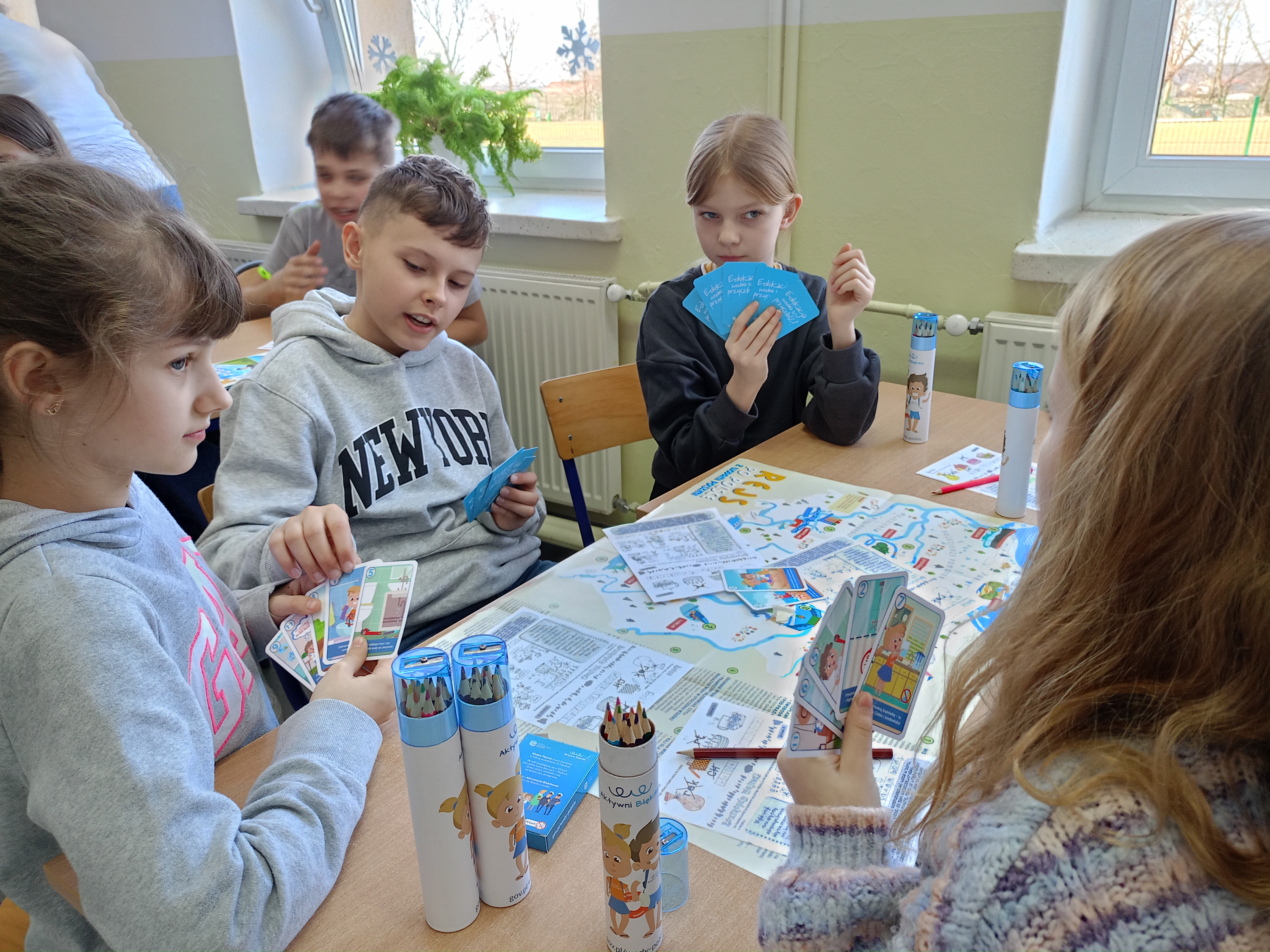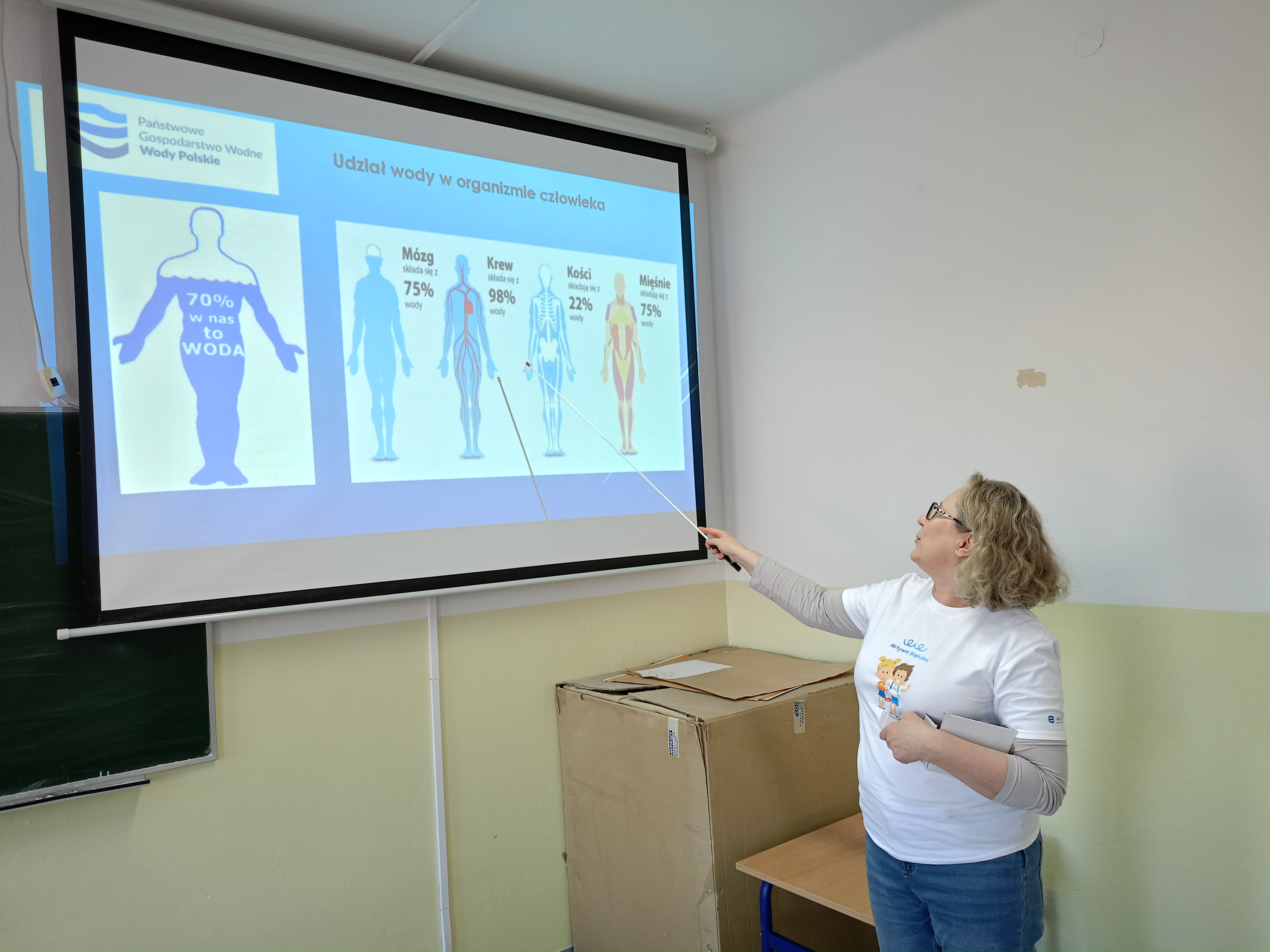 Każde z zajęć poprzedzała garść teorii - uczniowie poznawali znaczenie wody dla życia człowieka i funkcjonowania środowiska naturalnego, sposoby oszczędzania zasobów wodnych i ochrony ich przed zanieczyszczeniami. Prawdziwą frajdę sprawiły zajęcia praktyczne z doświadczeniami, kolorowankami i rebusami, prace z mapami i na koniec wspólna rozrywka z grą Wodny Piotruś. Okazuje się, że dzieci i młodzież nieźle orientują się w „wodnej” tematyce, ale edukacji nigdy za wiele. Woda to nasz skarb i musimy o nią dbać.