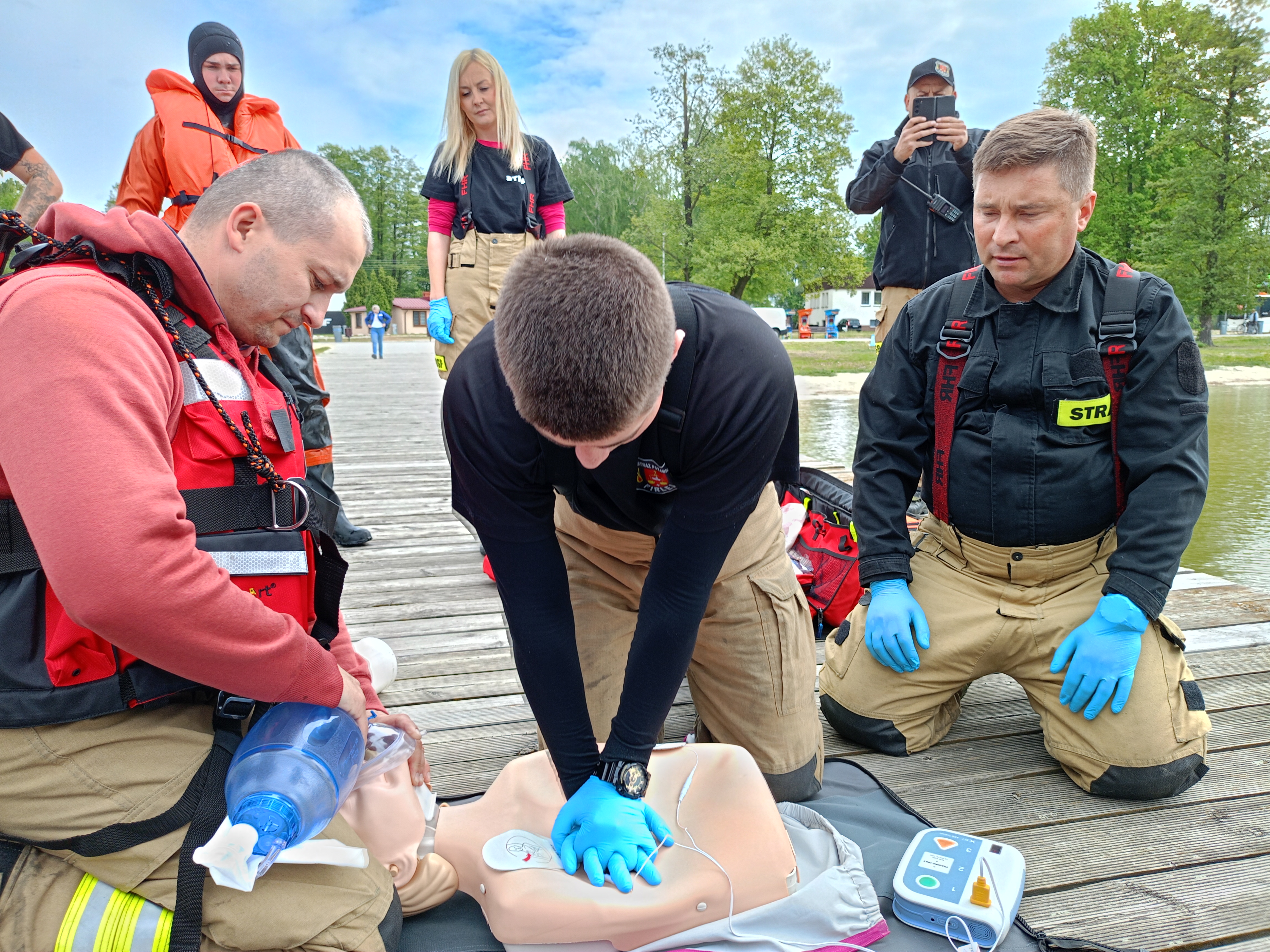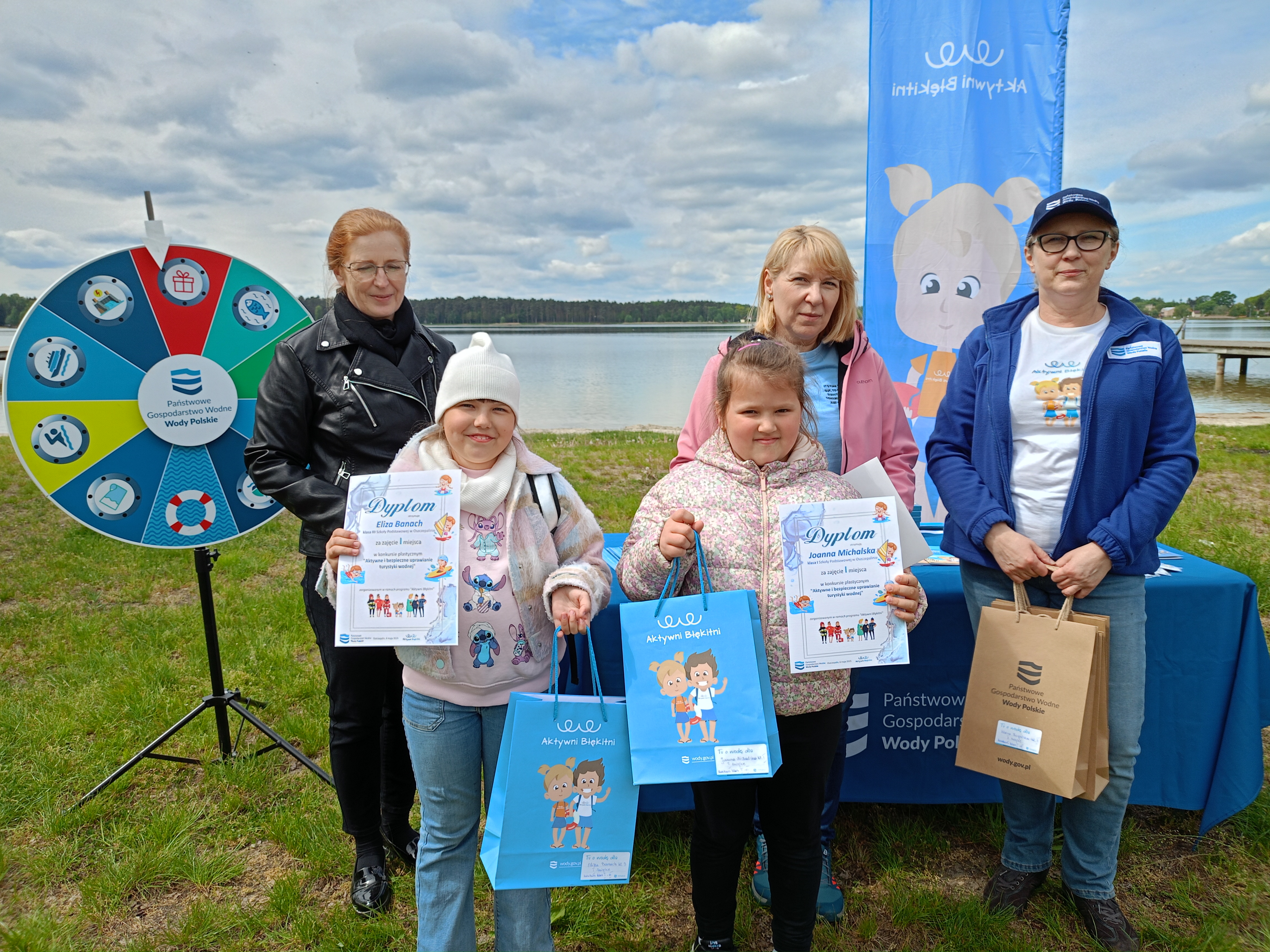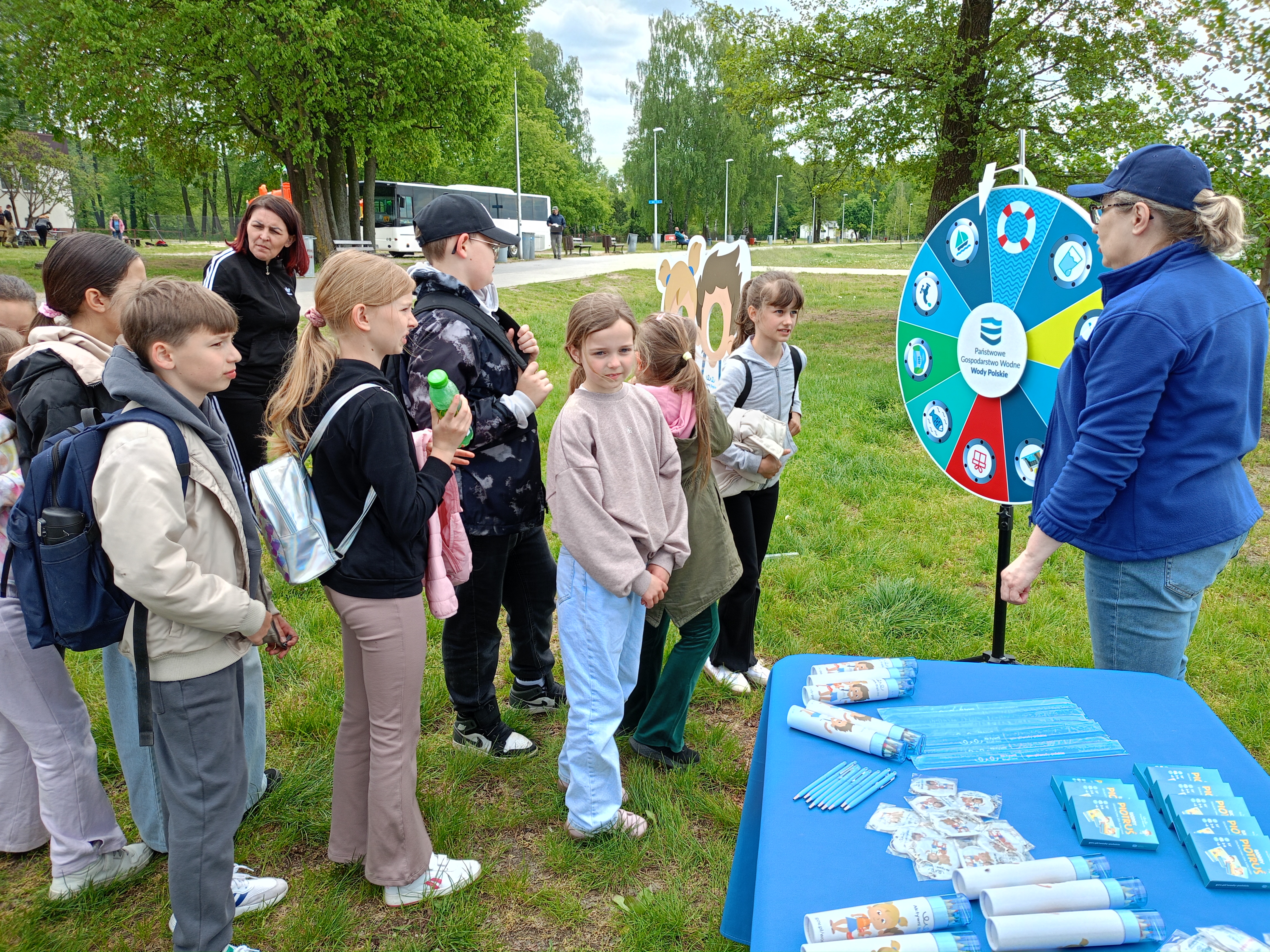 Atrakcje zaczęły się od pokazu ratownictwa i udzielania pierwszej pomocy przez Strażaków z Ochotniczej Straży Pożarnej w Firleju. Dzieci i młodzież mieli również okazję zapoznać się z zasadami bezpiecznego zachowania nad wodą. Następnie „Aktywni Błękitni” z Oszczepalina trafili pod nasze skrzydła, z zapałem kręcąc Wodnym Kołem Fortuny. Z przyjemnością ufundowaliśmy i wręczyliśmy nagrody dla laureatów dwóch konkursów zorganizowanych przez Szkołę: konkursu wiedzy dla klas IV-VI pt. „Wodę kochamy, więc ją oszczędzamy” oraz konkursu plastycznego dla klas I-III „Aktywne i bezpieczne uprawianie turystyki wodnej”. Dziękujemy za błękitną aktywność i gratulujemy zwycięzcom. Na finał spotkania wszyscy wyruszyliśmy na sprzątanie okolic jeziora.