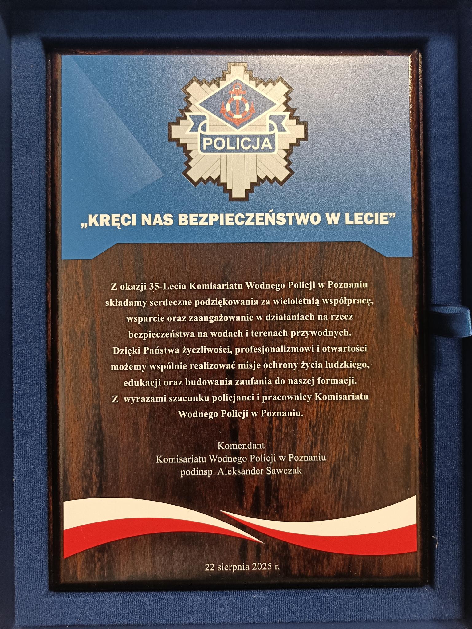 Uroczystość była okazją do wspomnień, podsumowań oraz rozmów o przyszłości służby wodnej, która odgrywa kluczową rolę w zapewnianiu bezpieczeństwa na wodach regionu. Podczas wydarzenia Dyrektor Michał Wierzbicki odebrał z rąk Komendanta Komisariatu Wodnego Policji, podinsp. Aleksandra Sawczaka, oficjalne podziękowania za dotychczasową współpracę.