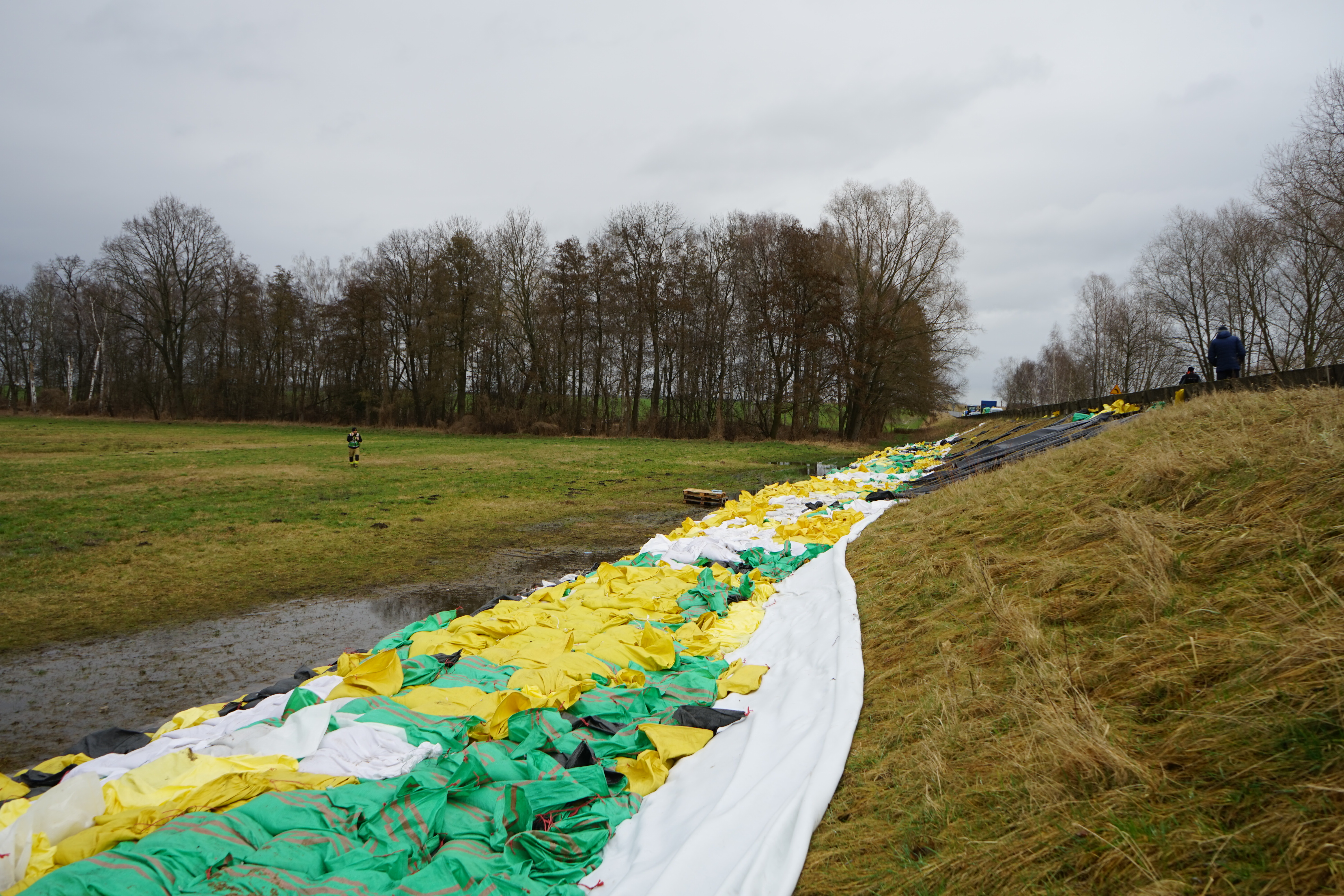 Wzmacniane są również wyrwy na lewym wale przeciwpowodziowym Kościańskiego Kanału Obry. Ze względu na brak możliwości poruszania się po wałach, worki z piaskiem dostarczane są za pomocą łodzi. Usuwane są zatory powyżej Kościana.