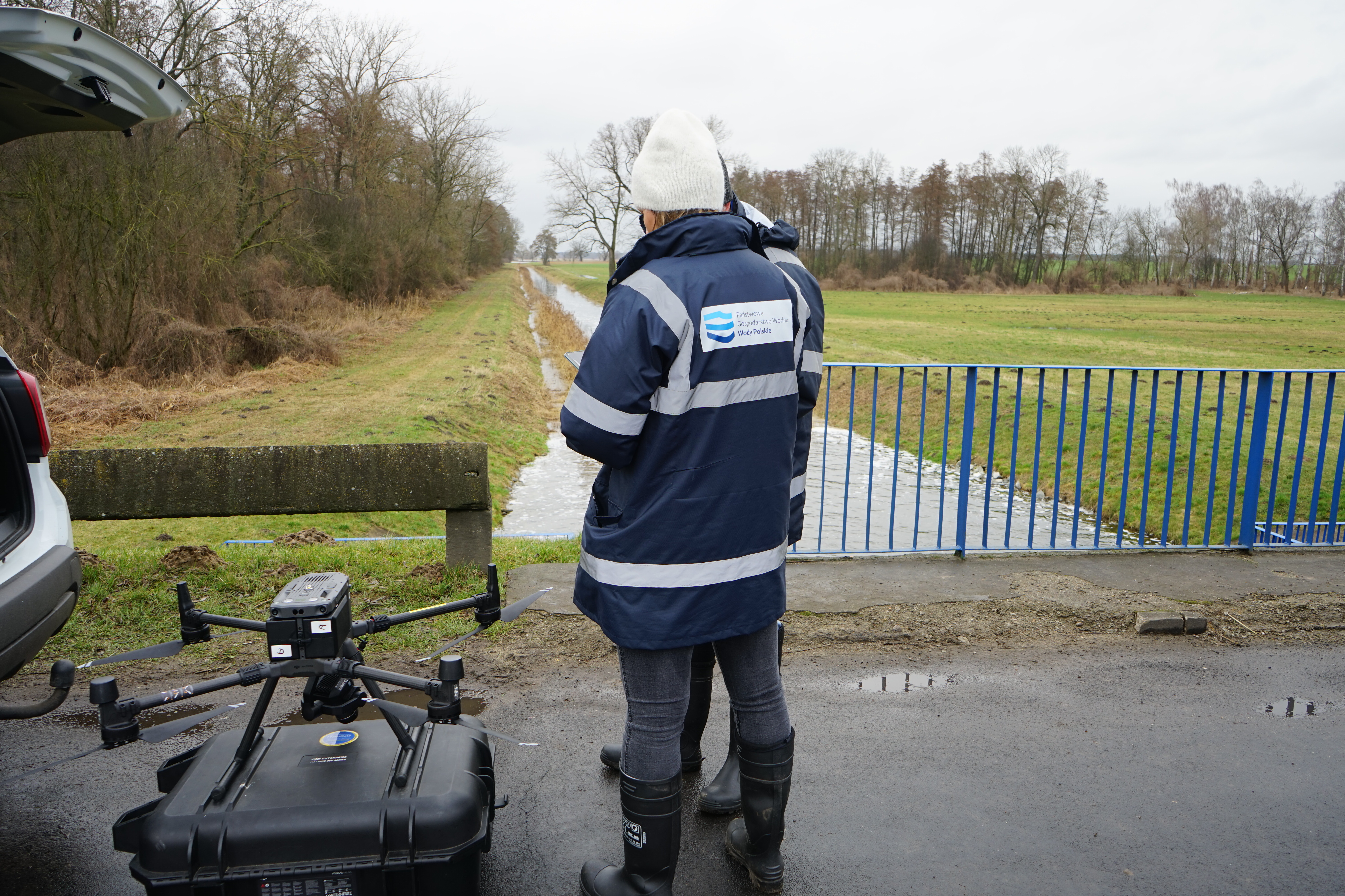 W sobotę, 17 lutego br. stan kanałów od jazu w Gryżynie w kierunku Jurkowa i Kurzej Góry za pomocą dronów monitorowali strażacy z Poznania. W ramach zarządzania kryzysowego podjęto decyzję o wzmocnieniu workami z piaskiem wałów w trzech miejscach w okolicy Gryżyny. Pracownicy Wód Polskich włączyli się do działań, również monitorując teren za pomocą drona, dodatkowo kontrolując szczelność zapory czołowej i zapór bocznych zbiornika Wonieść.