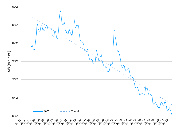 - poważne deficyty wód, przejawiające się ubytkiem poziomu wody w pobliskich jeziorach, przesuszeniem mokradeł, obniżeniem zwierciadła wód gruntowych i głębszych poziomów wodonośnych oraz zanikiem licznych cieków.