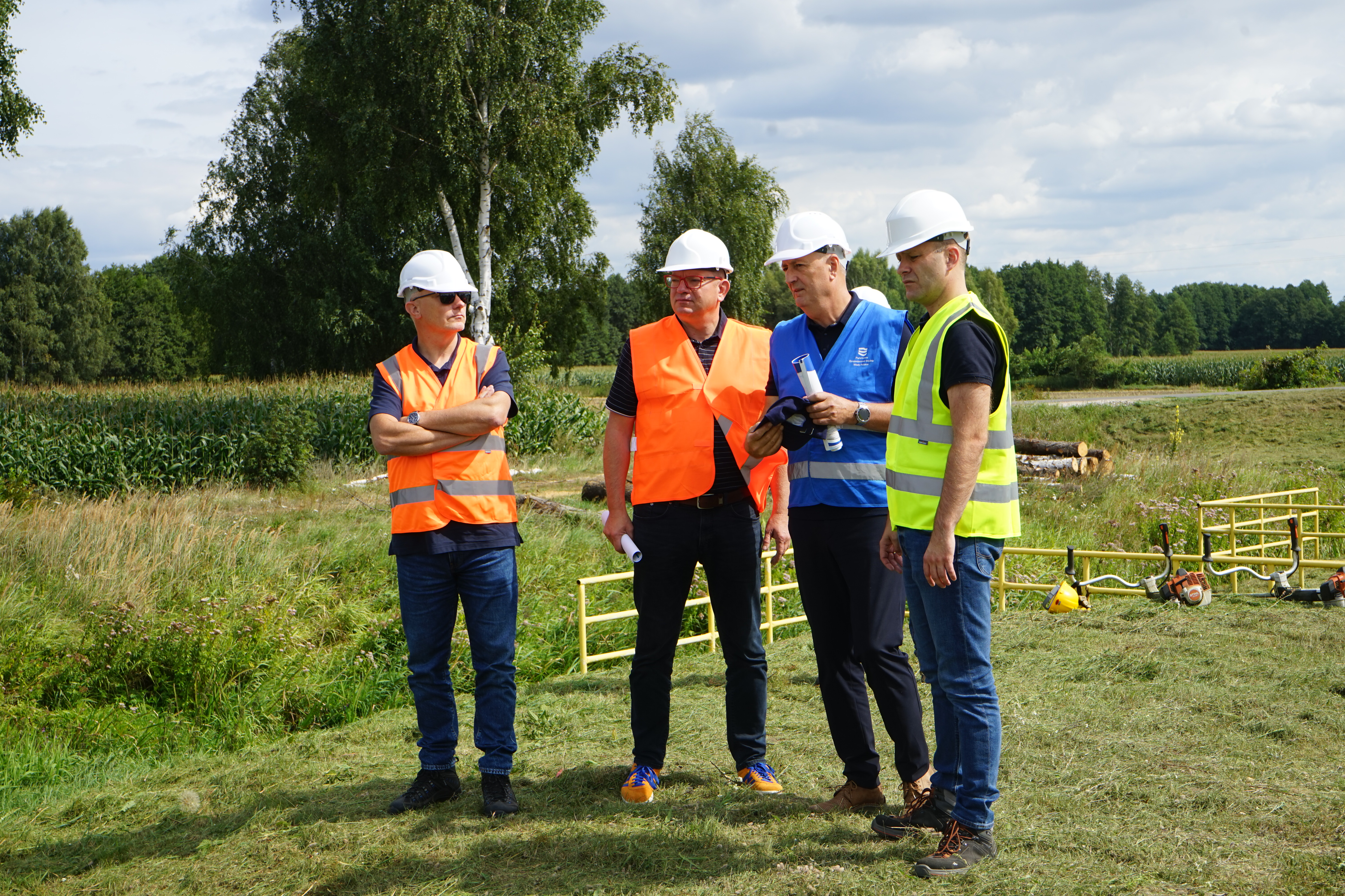 W wizycie na placu budowy wzięli udział przedstawiciele PGW Wody Polskie RZGW w Poznaniu: Dyrektor RZGW w Poznaniu Michał Wierzbicki, Zastępca Dyrektora ds. Ochrony przed Powodzią i Suszą Błażej Waligórski oraz Dyrektor Zarządu Zlewni w Sieradzu Grzegorz Szewczyk.