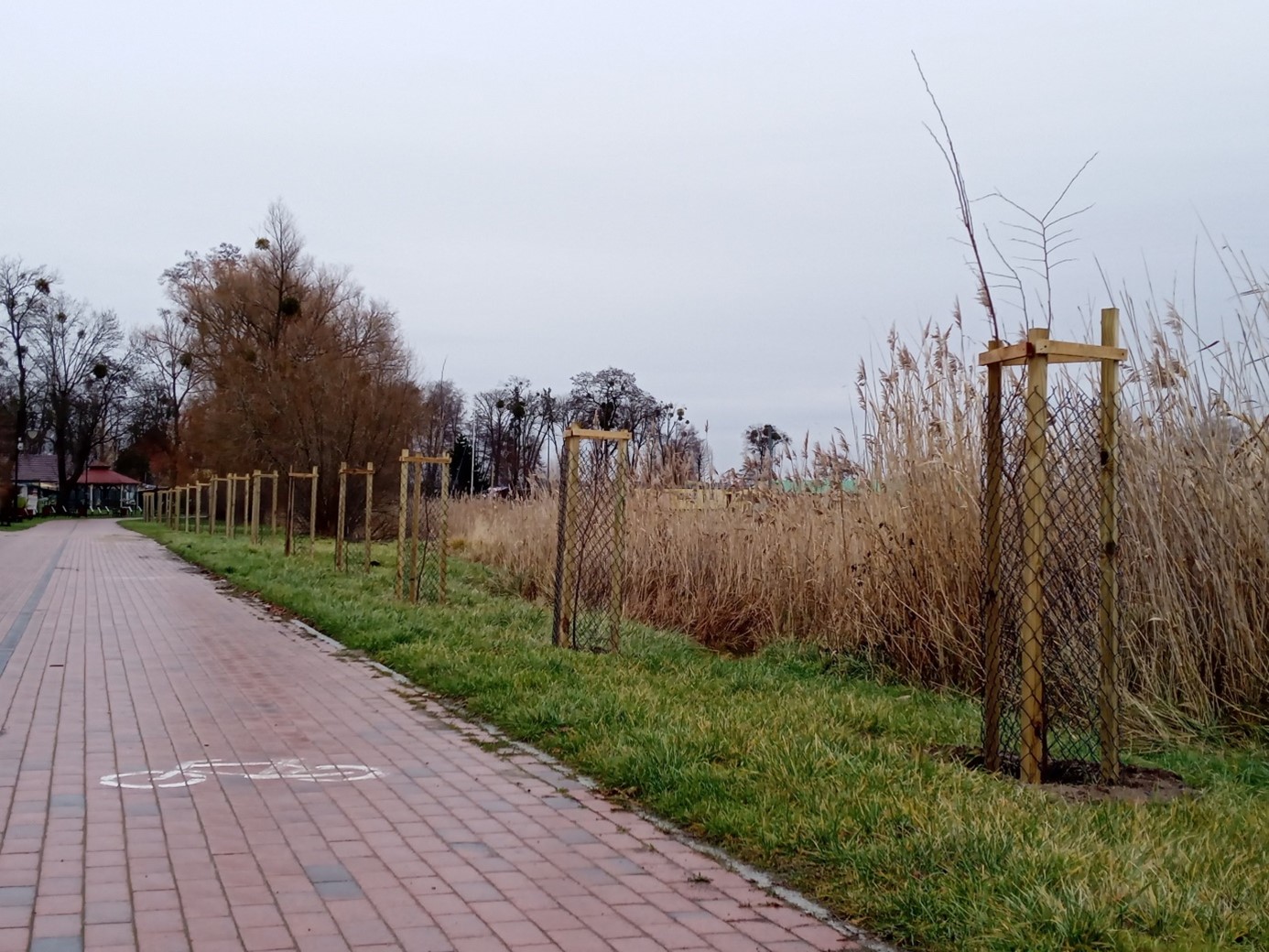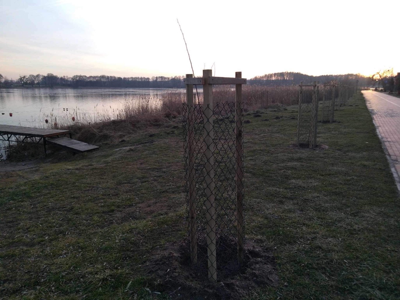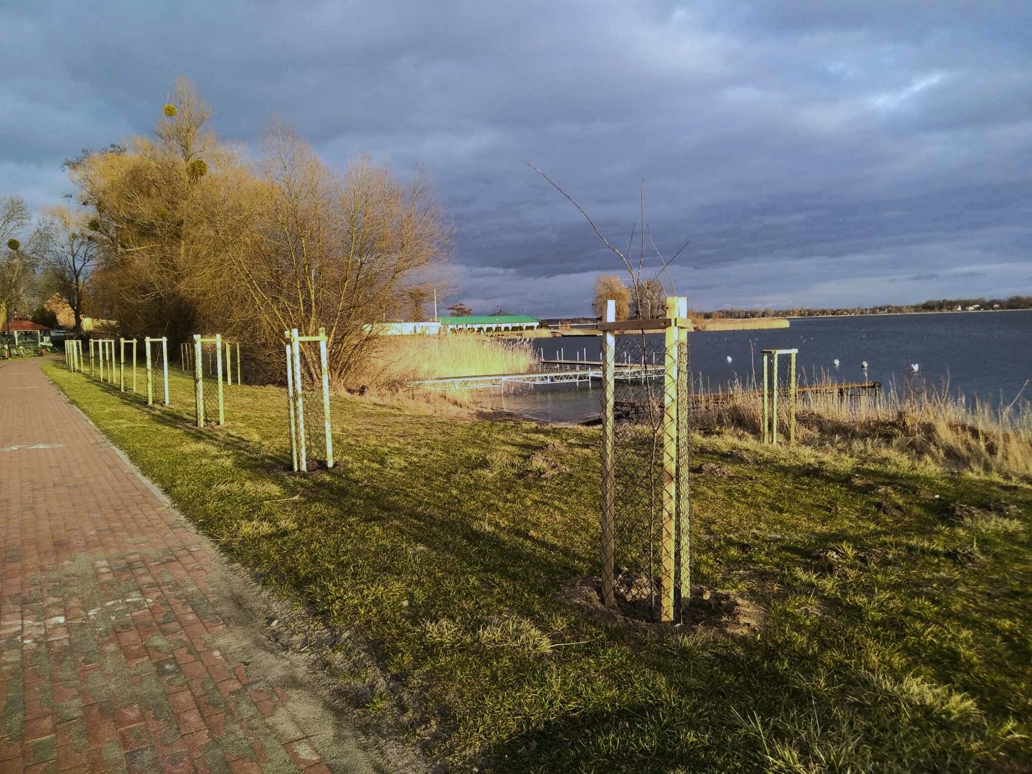 Jednym ze sposobów ochrony wód jest właśnie tworzenie stref buforowych. Działanie to realizuje Zespół Parków Krajobrazowych Województwa Wielkopolskiego, sadząc w strefie przybrzeżnej jezior gatunki drzew związanych z obszarami wilgotnymi, m.in. olchy czarne (Alnus glutinosa) czy wiązy szypułkowe (Ulmus laevis). Naśladując naturalną strefowość roślinności nadwodnej, stosowane są również nasadzenia z krzewiastej wierzby szarej (łozy) (Salix cinerea), a ponieważ brak jej sadzonek w obiegu handlowym, praktykowana jest tradycyjna metoda sadzenia sztobrów, czyli wkopywanie fragmentów gałązek wierzbowych w charakterze tzw. wegetatywnych sadzonek zdrewniałych. Wierzba ze względu na swoją wyjątkową żywotność łatwo się ukorzenia i wypuszcza ulistnione pędy, zwłaszcza na terenach okresowo zalewanych wodą. Oczywiście nasadzenia wymagają zabezpieczeń przed bobrami, sarnami i ludźmi!!! Drzewka są chronione indywidualnie, poprzez palikowanie i siatkowanie, bądź okresowe wygrodzenia. W pierwszym etapie tworzenia stref buforowych posadzono i zabezpieczono 195 drzew z rozwiniętym systemem korzeniowym oraz ponad 600 sadzonek wierzby.
