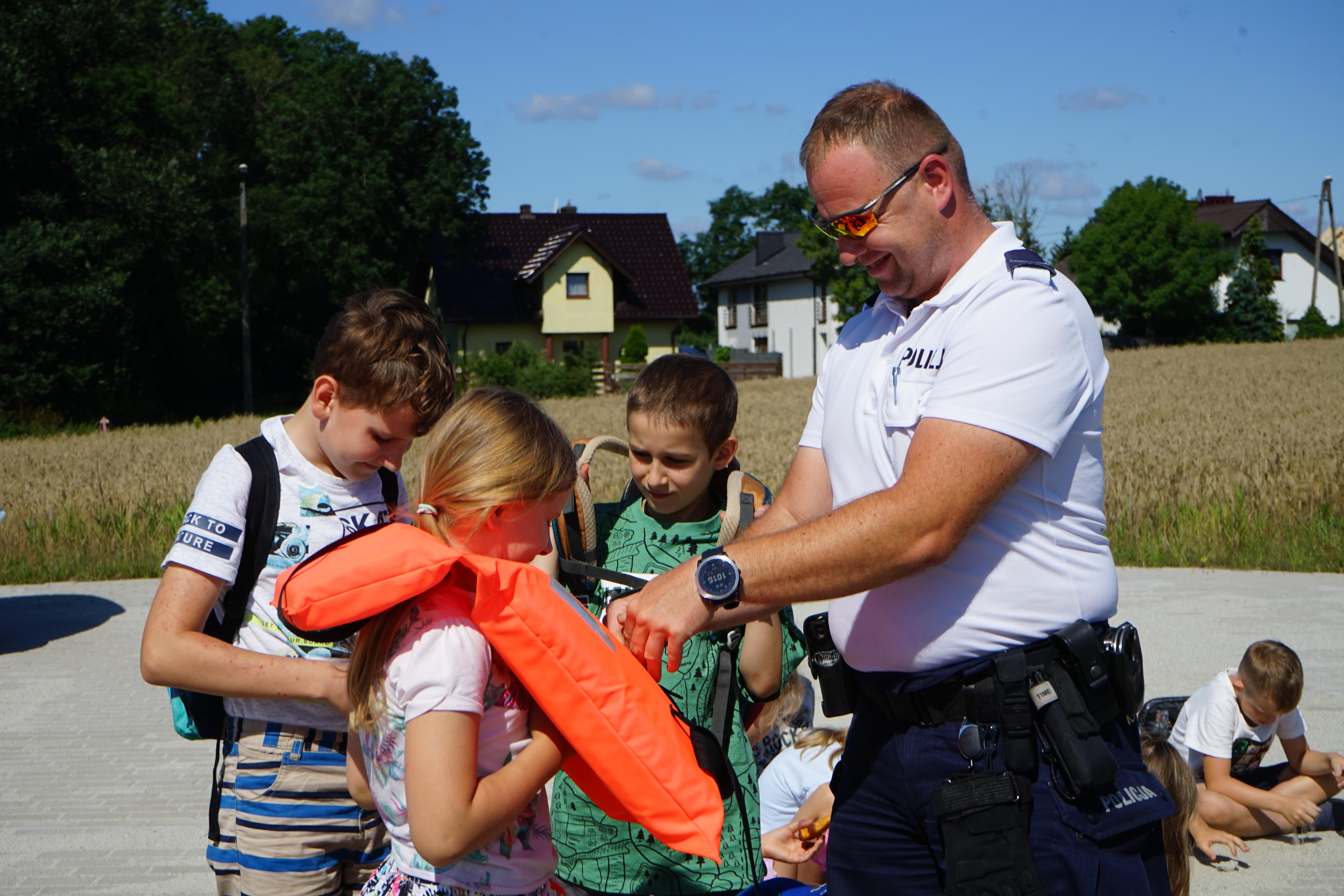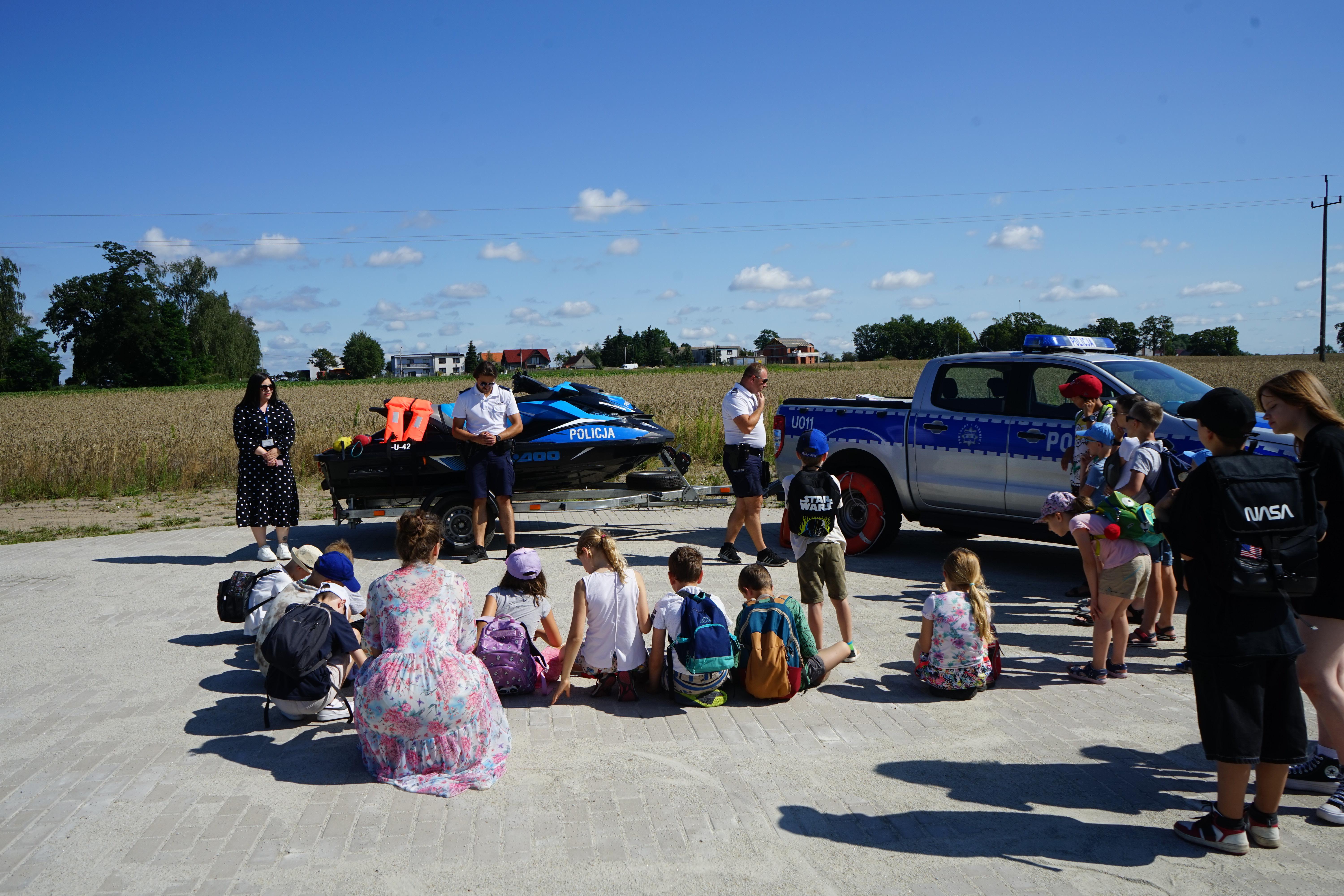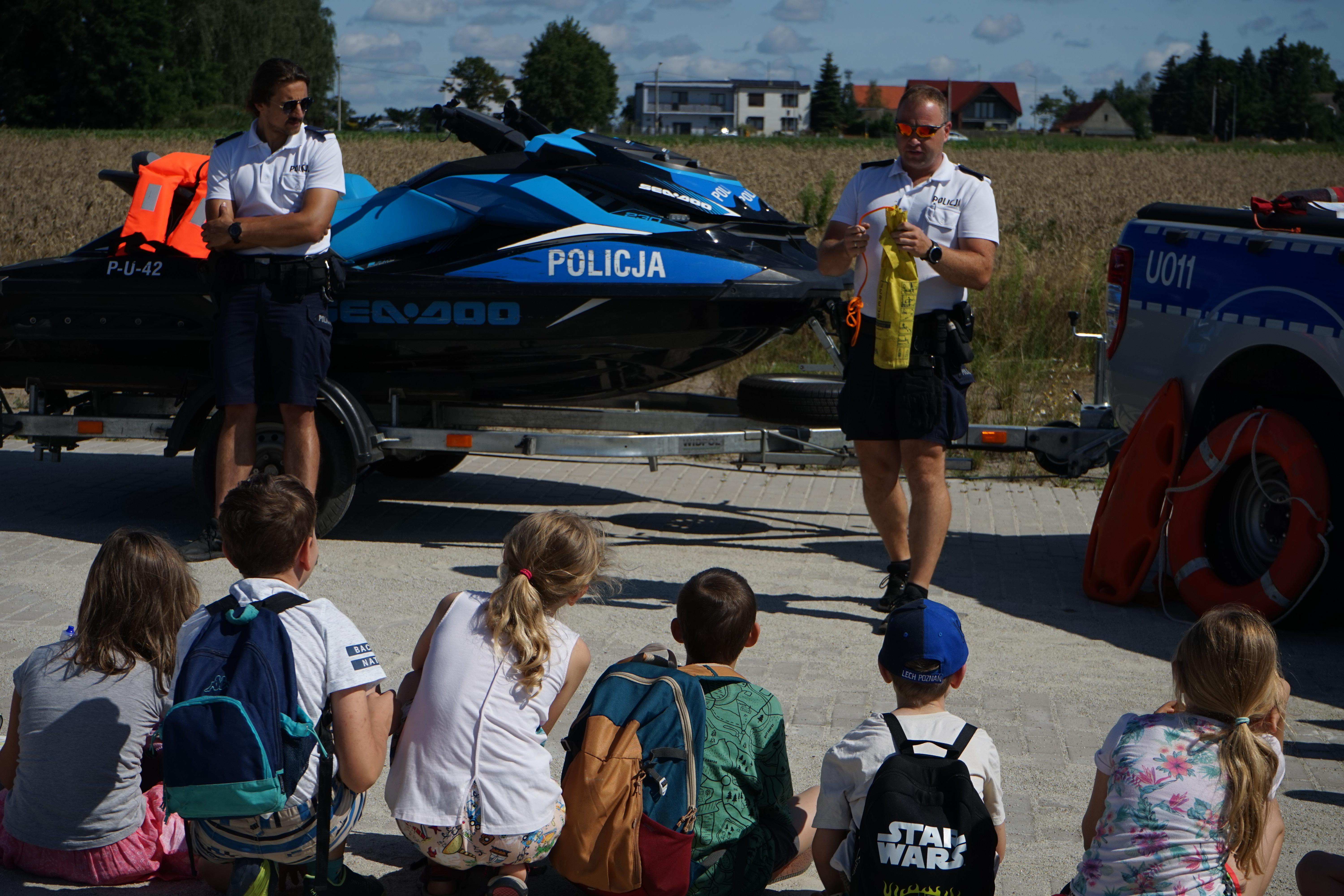 W szczycie sezonu letniego, nad zbiornikiem Tulce, do współpracy zaprosiliśmy również Policjantów z Komisariatu Wodnego Policji w Poznaniu, którzy przeprowadzili warsztaty dotyczące bezpiecznego korzystania z rekreacji wodnej, pokazując sprzęt ratowniczy używany podczas swojej codziennej pracy na wodzie.