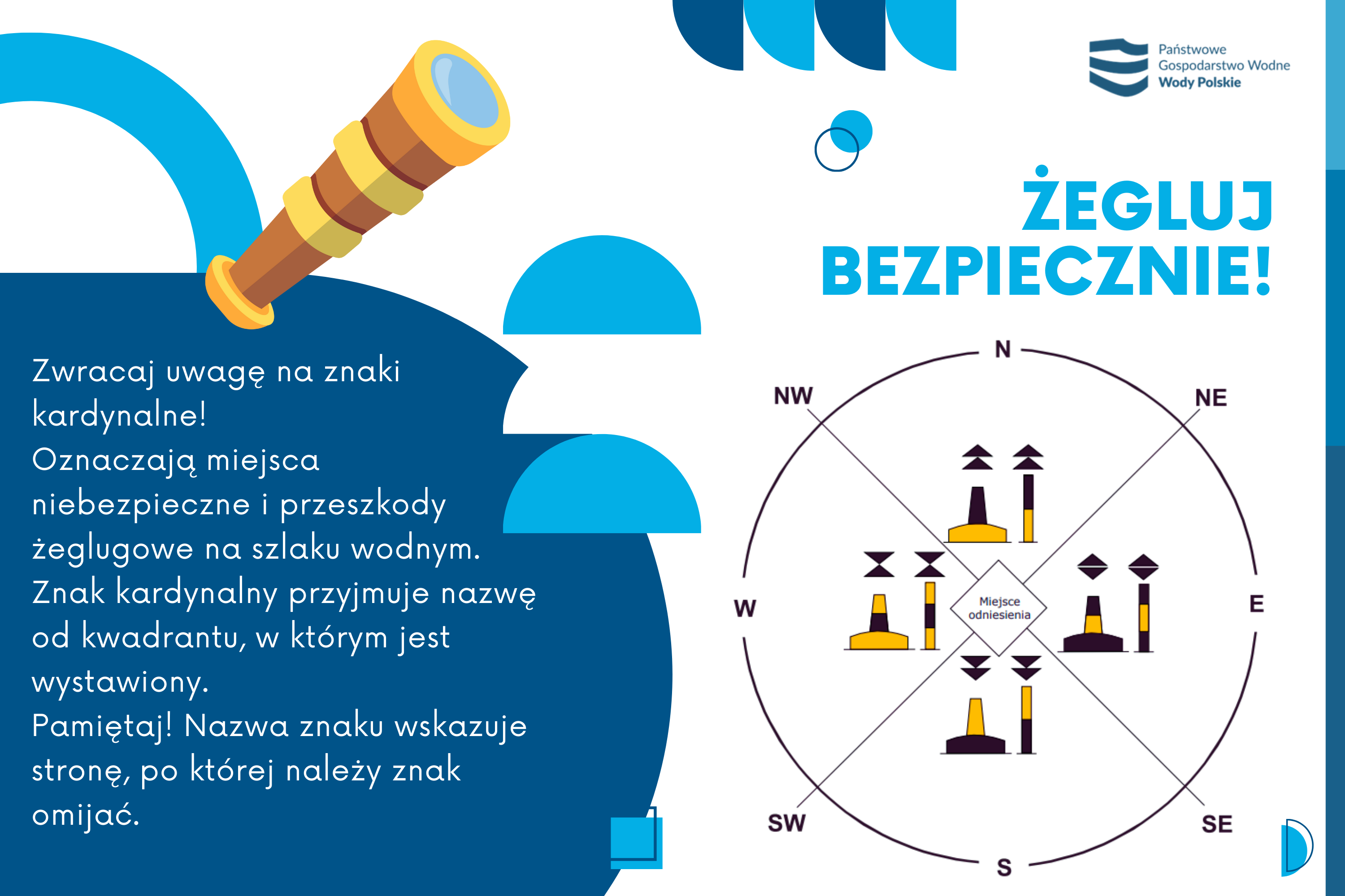 W broszurze Ministerstwa Infrastruktury pt. „Oznakowanie nawigacyjne w żegludze śródlądowej” znajdziesz więcej cennych wskazówek dotyczących oznakowania nawigacyjnego - nie tylko boi, pław czy bakenów, ale również znaków wystawionych na brzegach rzek, kanałów i jezior. Te również powinieneś znać, aby i Twoje żeglowanie było bezpieczne. Broszurę możesz pobrać pod poniższym linkiem: