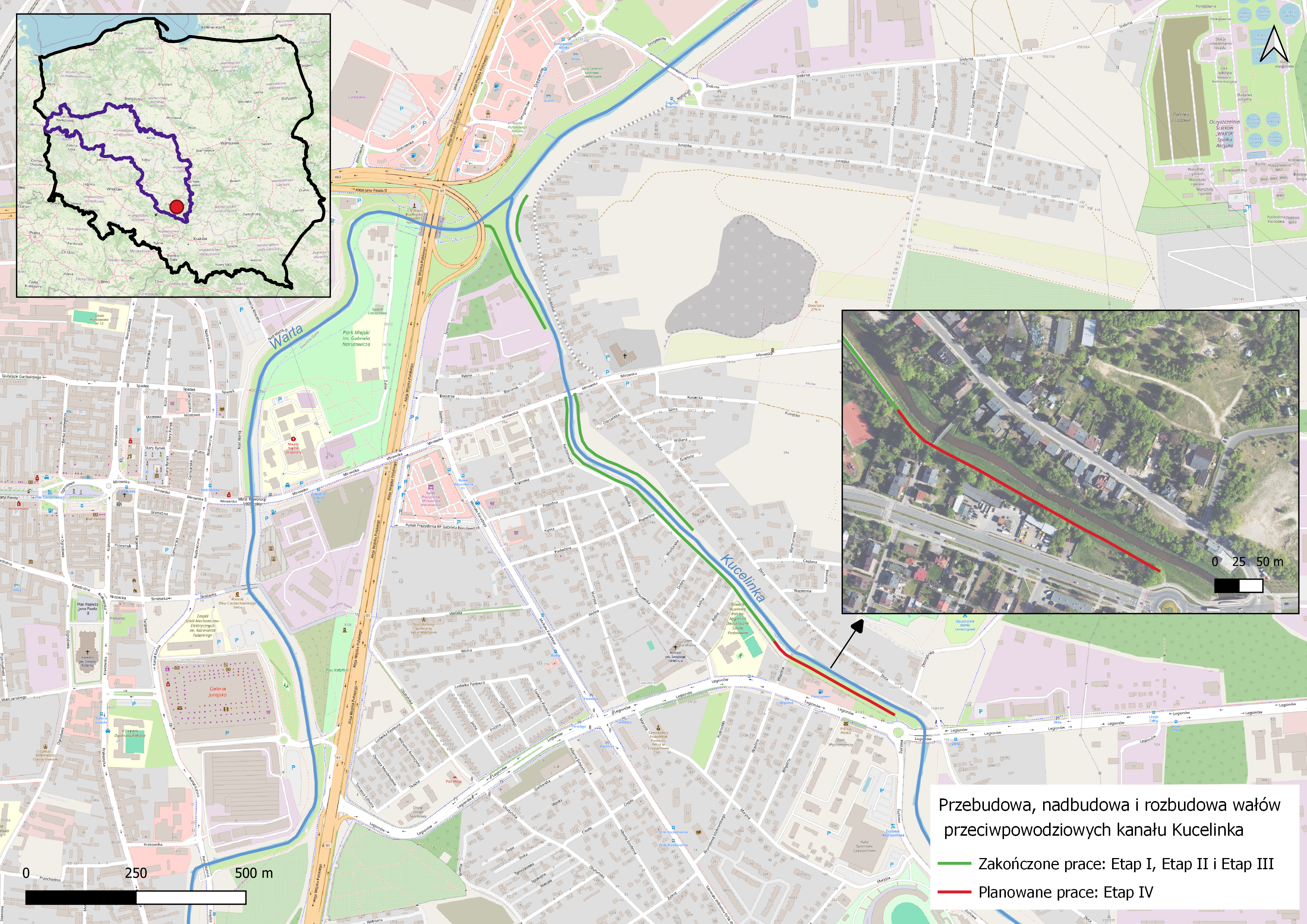 W ramach IV etapu zadania pn.: „Przebudowa, nadbudowa i rozbudowa wałów przeciwpowodziowych kanału Kucelinka o długości 13,68 km na terenie miasta Częstochowa, woj. śląskie” zrealizowano prace na lewym wale (odcinek L-II) o długości 345 m (od km 0+750 do km 1+095). Zakres robót obejmował m.in.: