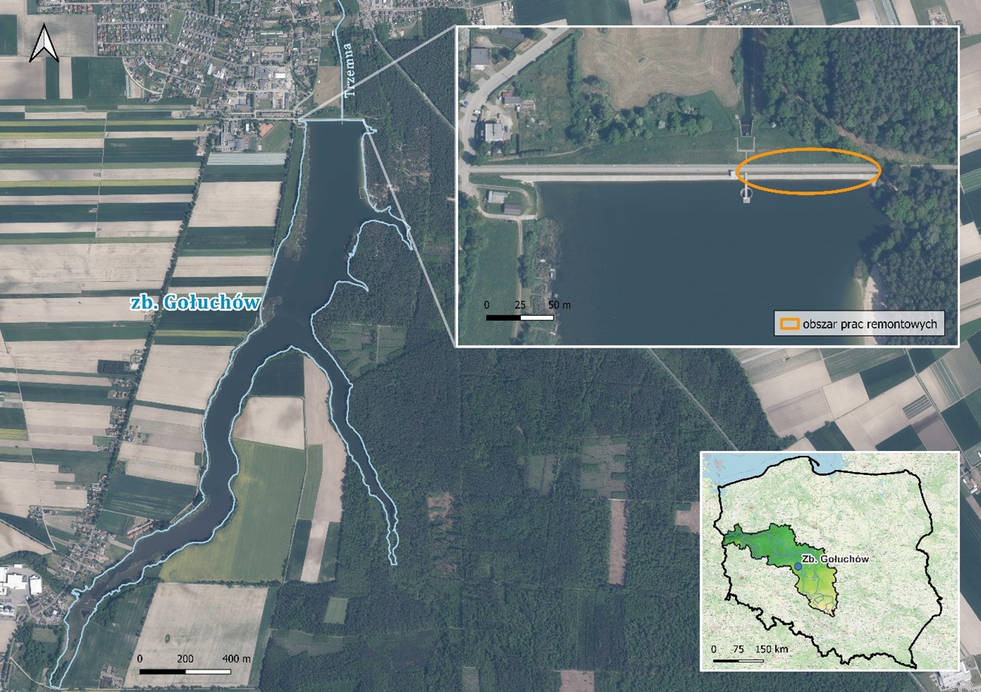 Zakres prac obejmował roboty naprawcze obiektów budowlanych oraz urządzeń zbiornika, w tym główne roboty naprawcze zapory czołowej i podłoża gruntowego.