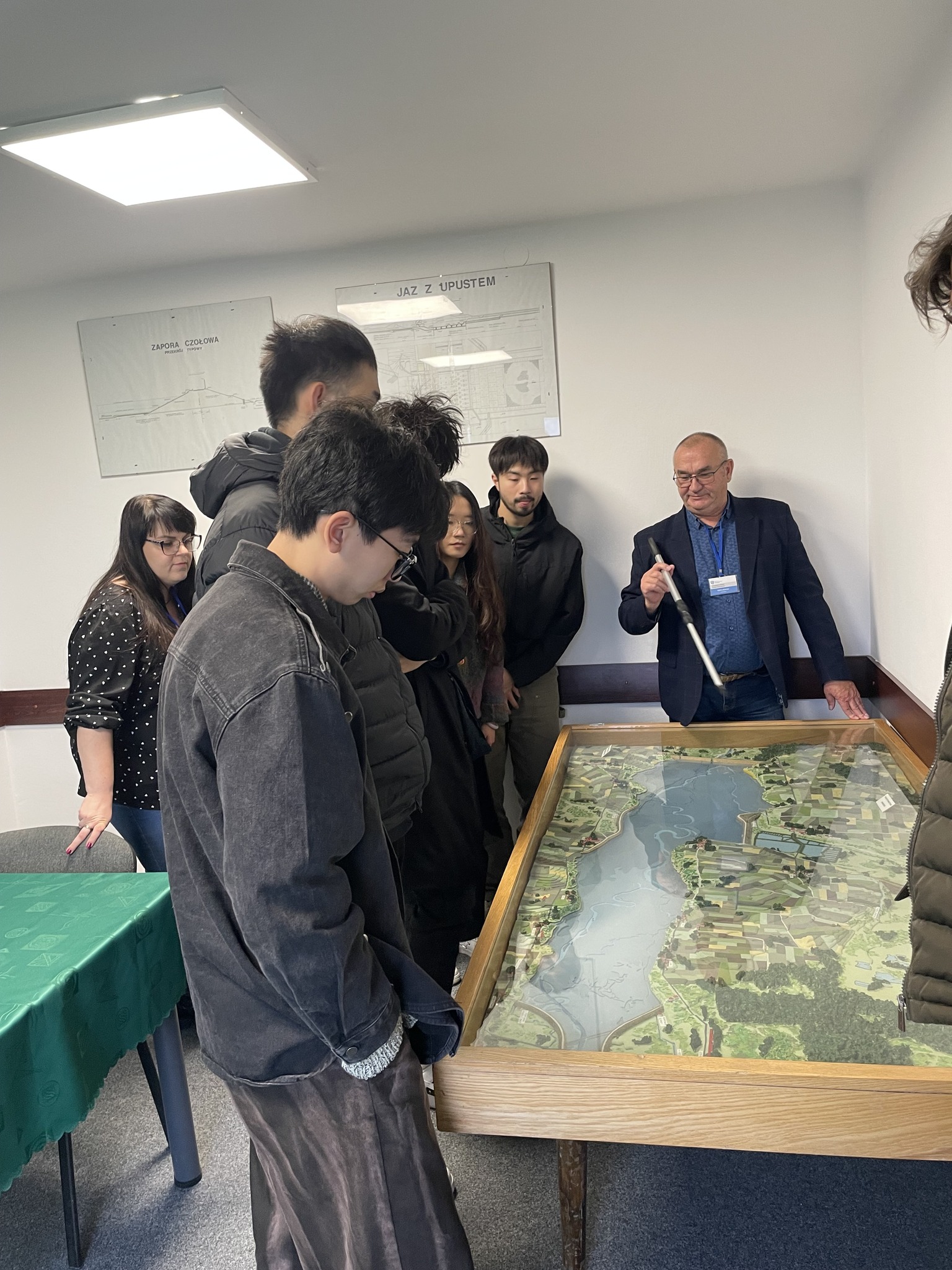 Podczas wizyty studenci Uniwersytetu Przyrodniczego w Poznaniu, kształcący się na kierunku Land Resource Management, mieli okazję zapoznać się z praktycznymi aspektami pracy przy eksploatacji zbiornika i elektrowni. W trakcie zajęć omówiono m.in. zasady działania urządzeń hydrotechnicznych, konstrukcję zapory oraz systemy monitoringu i zarządzania przepływem wód.