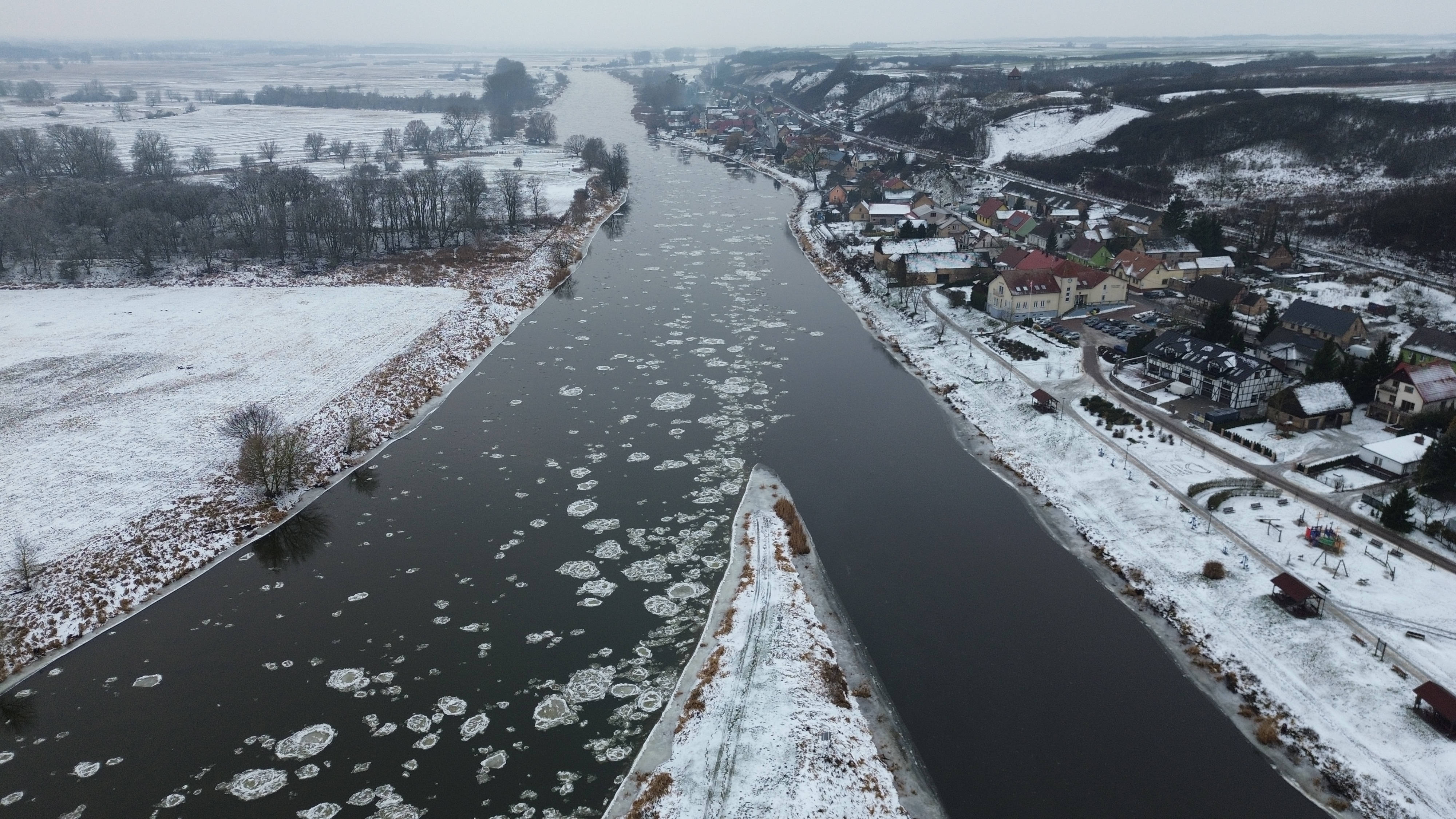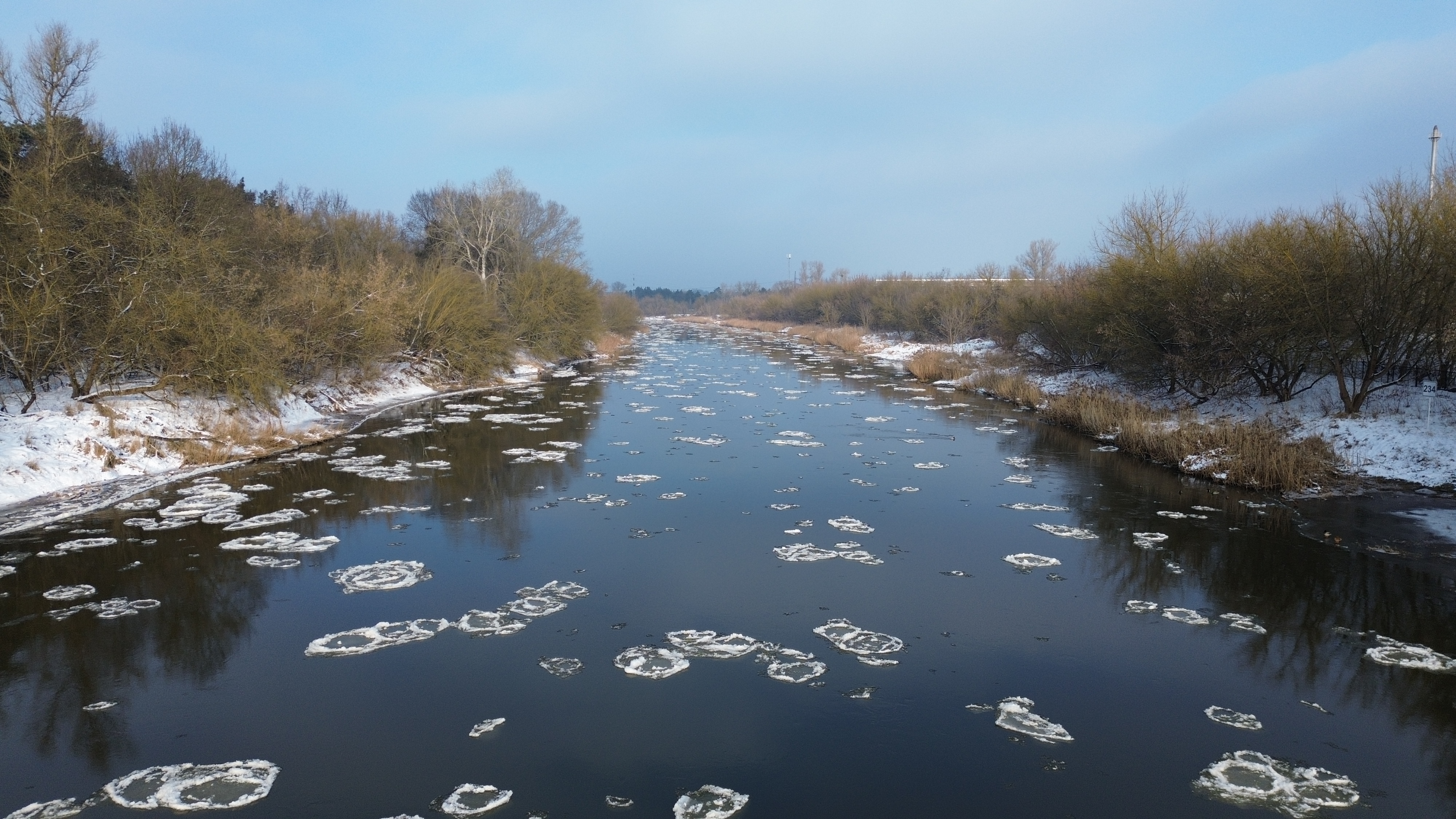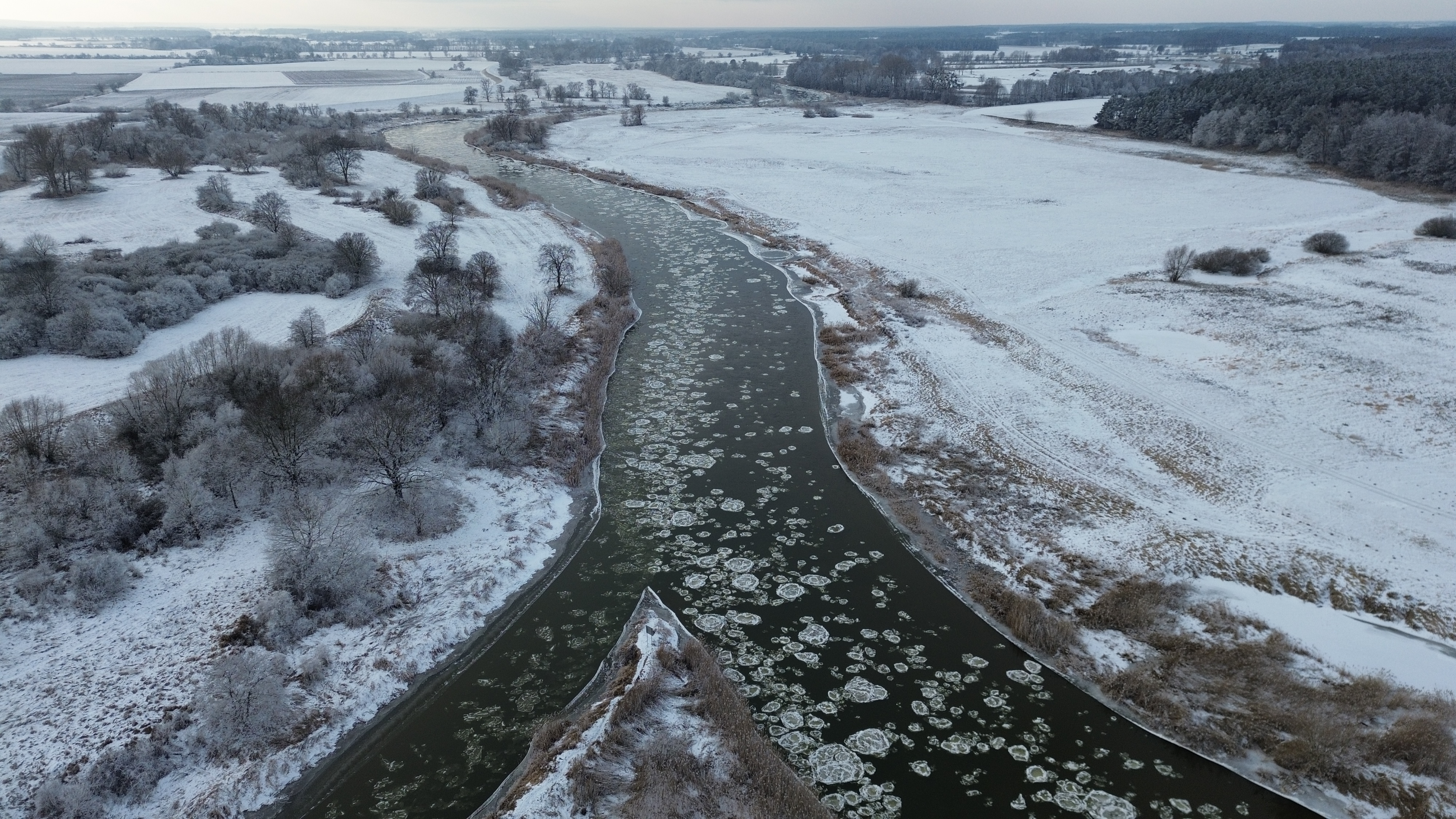 Warta – w środkowym i dolnym odcinku rzeki występuje śryż oraz lód brzegowy, pokrywający 30–50% powierzchni.