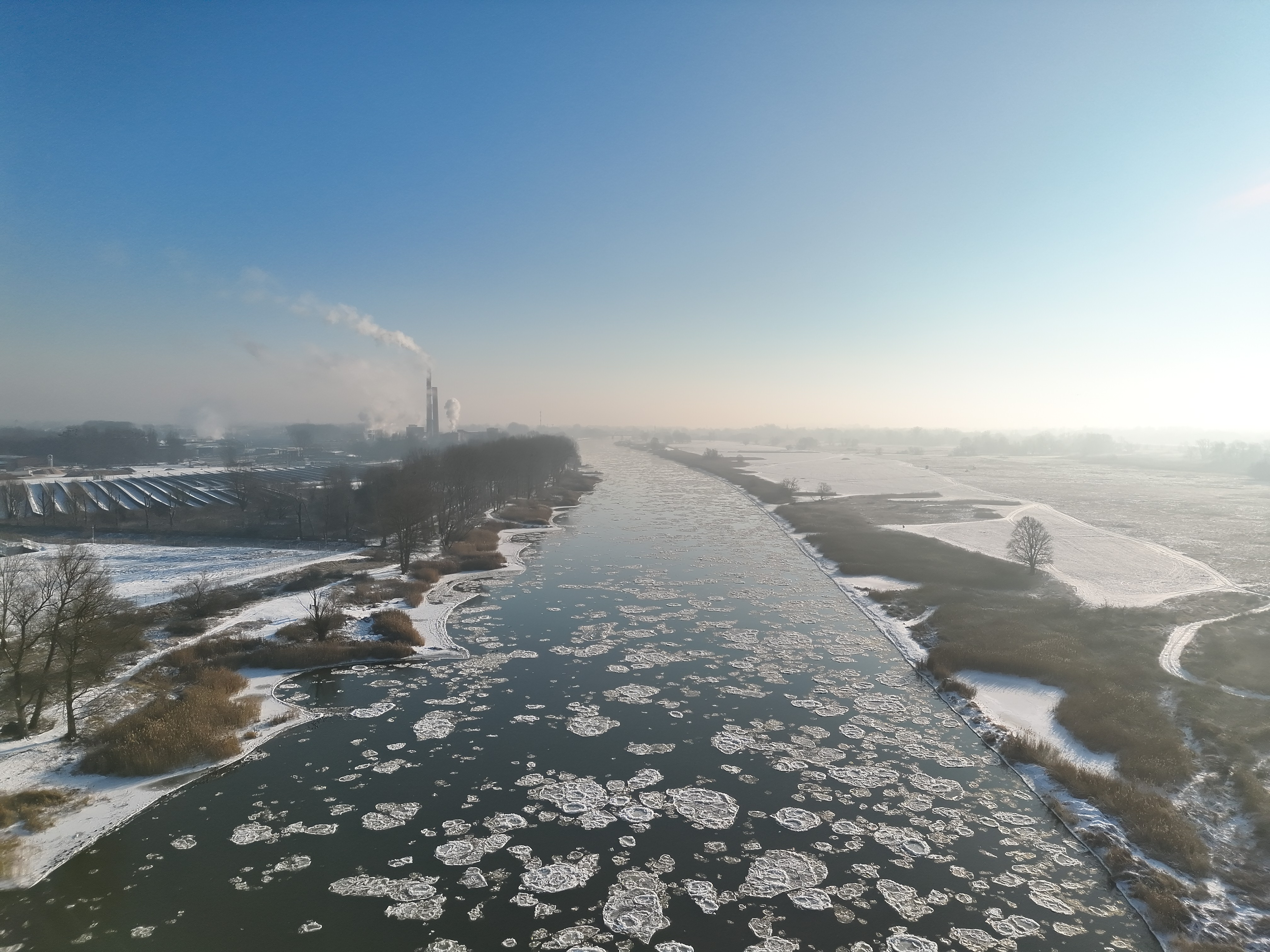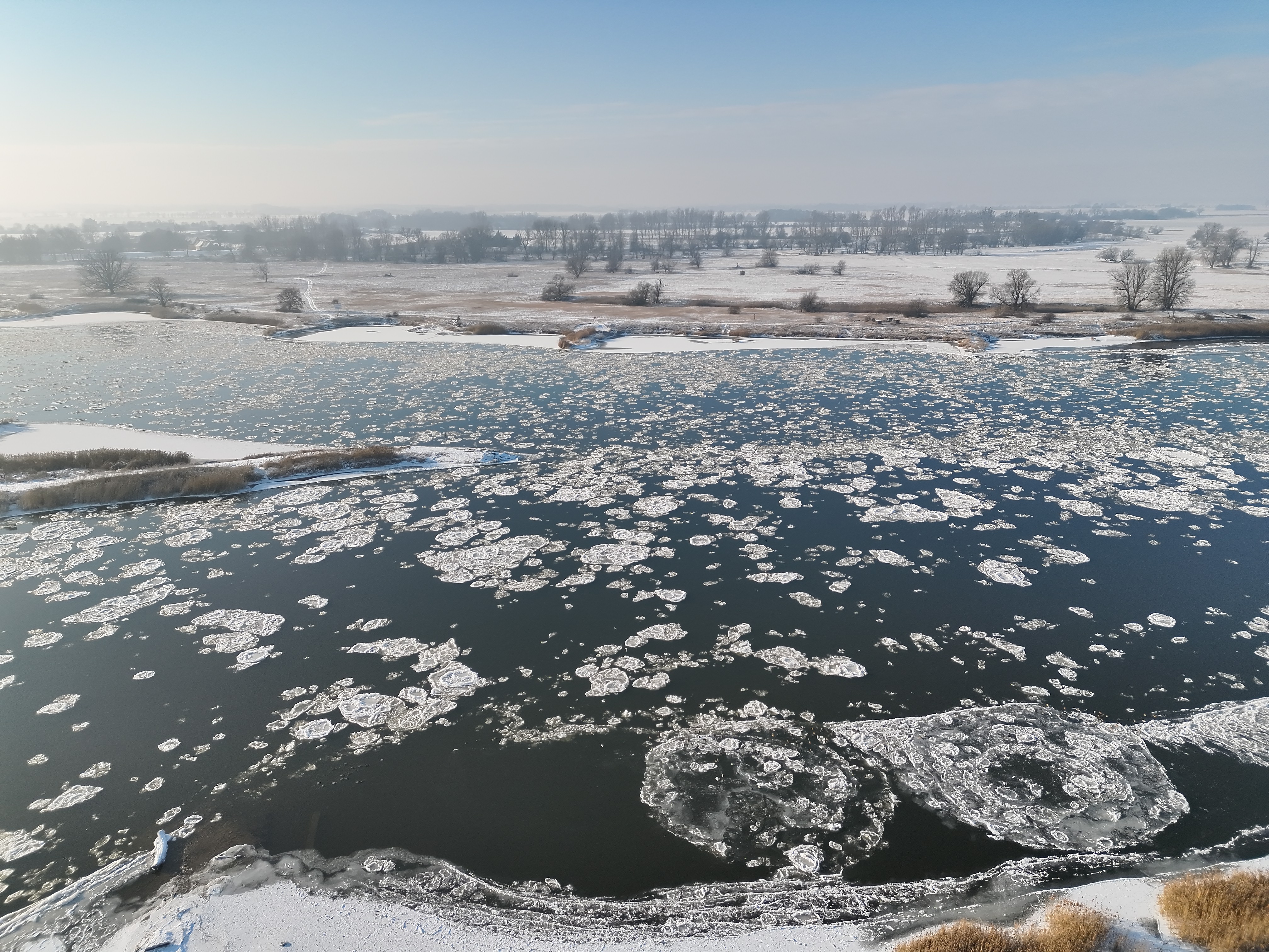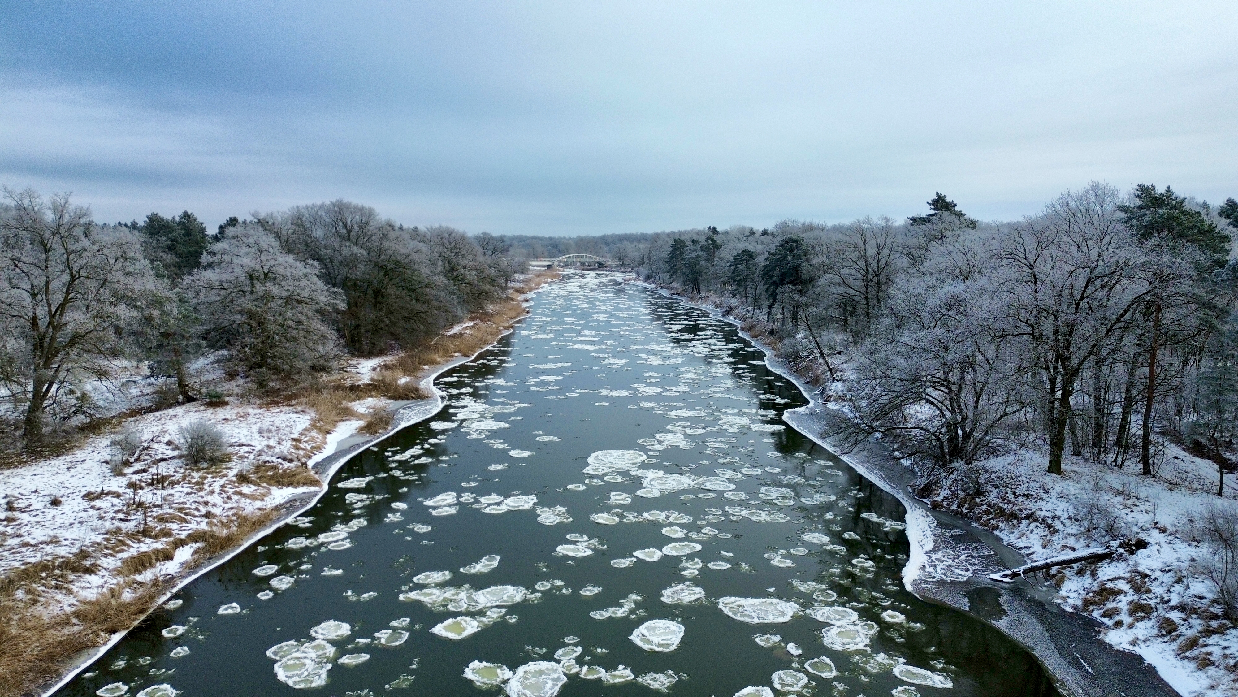 Warta – w środkowym i dolnym odcinku rzeki występuje śryż oraz lód brzegowy, pokrywający 30–50% powierzchni.
