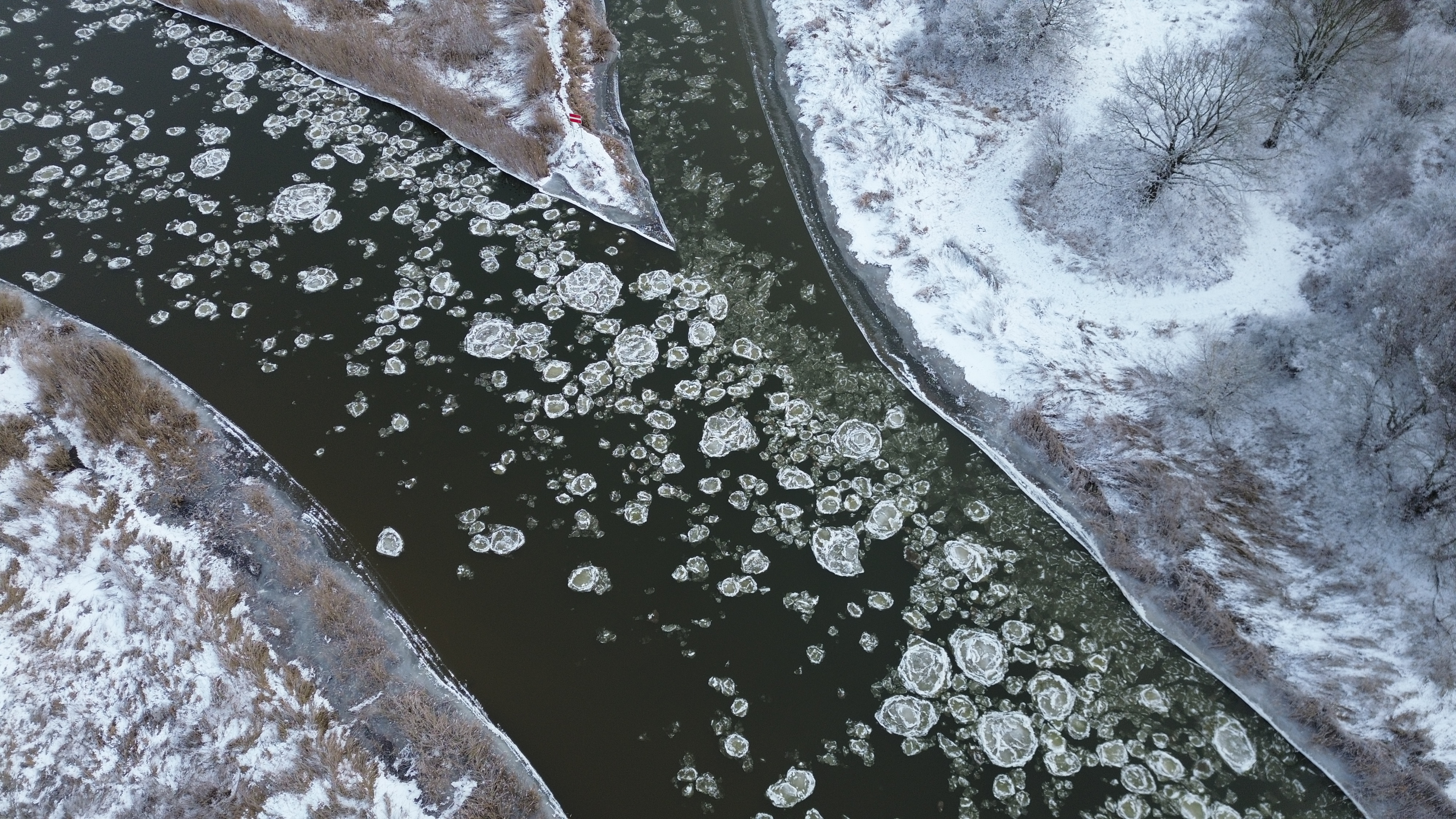 Warta – w środkowym i dolnym odcinku rzeki występuje śryż oraz lód brzegowy, pokrywający 20–30% powierzchni.