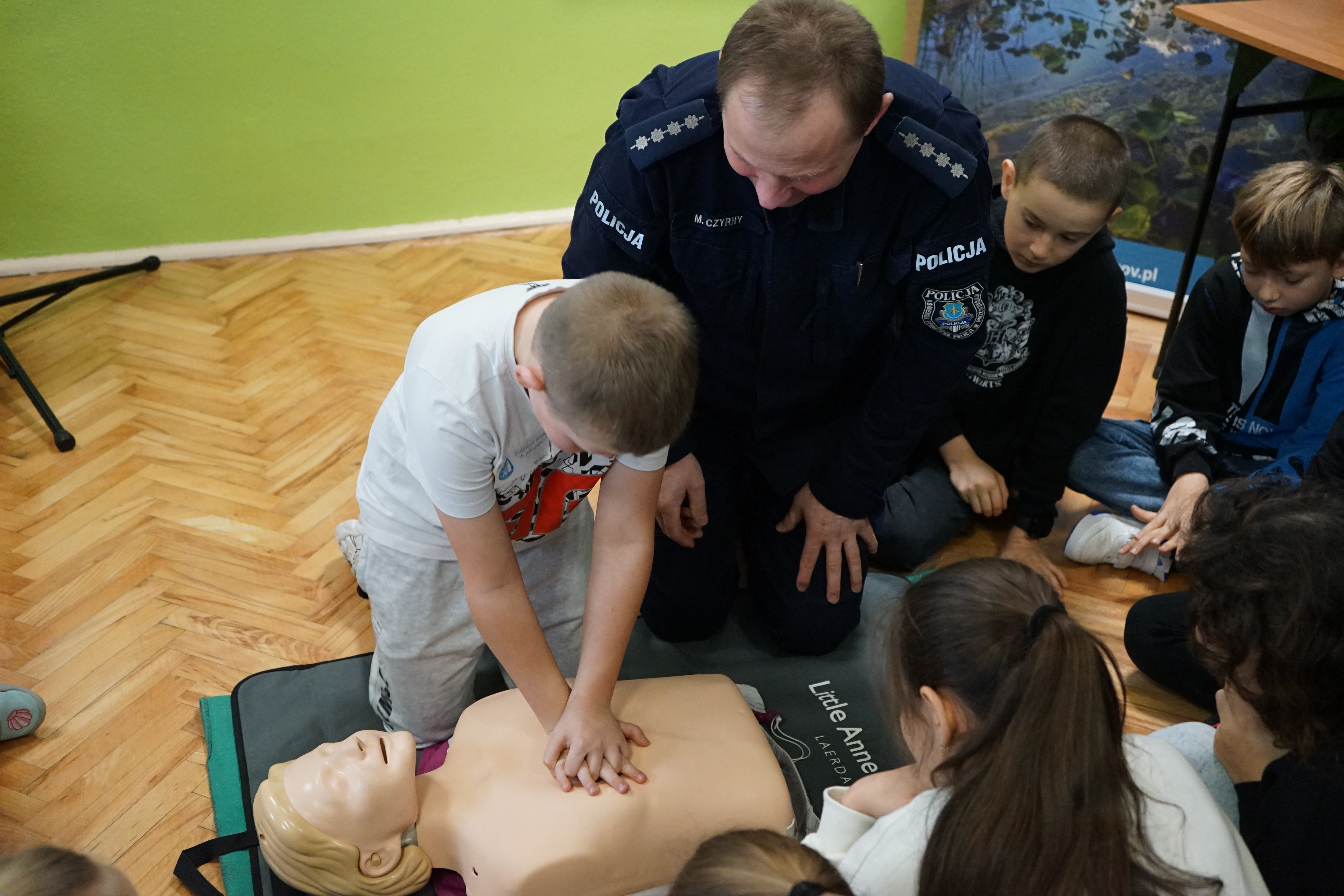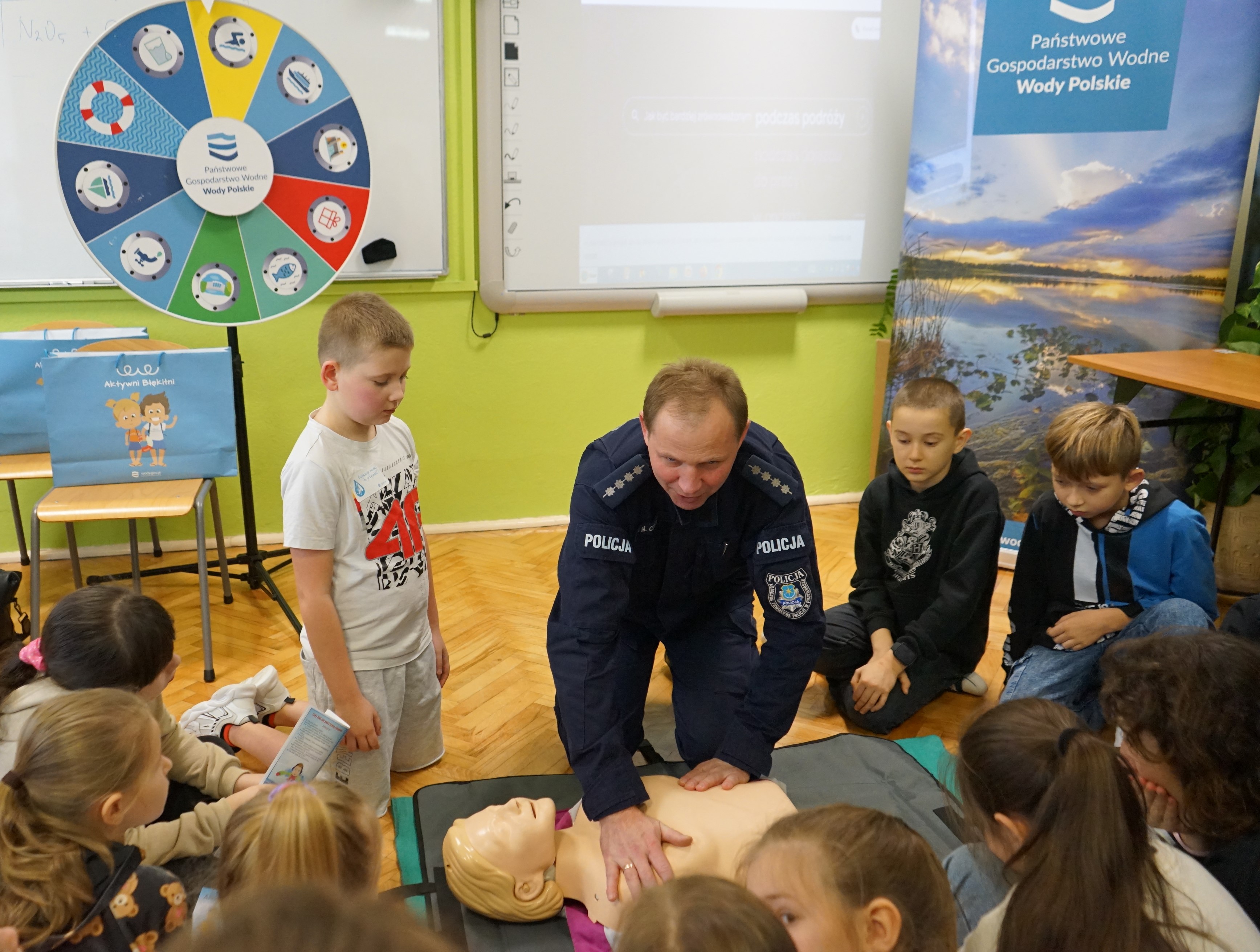 W szkole gościliśmy wspólnie z przedstawicielami Komendy Powiatowej Policji z Przeworska, którzy przekazali uczniom bezcenne informacje na temat bezpiecznej rekreacji wodnej i udzielania pierwszej pomocy. Umiejętność udzielania pierwszej pomocy często decyduje o życiu poszkodowanego, dlatego edukujemy uczniów jak zachować się w czasie niebezpiecznych sytuacji, jakie mogą zdarzyć się nad wodą i nie tylko.