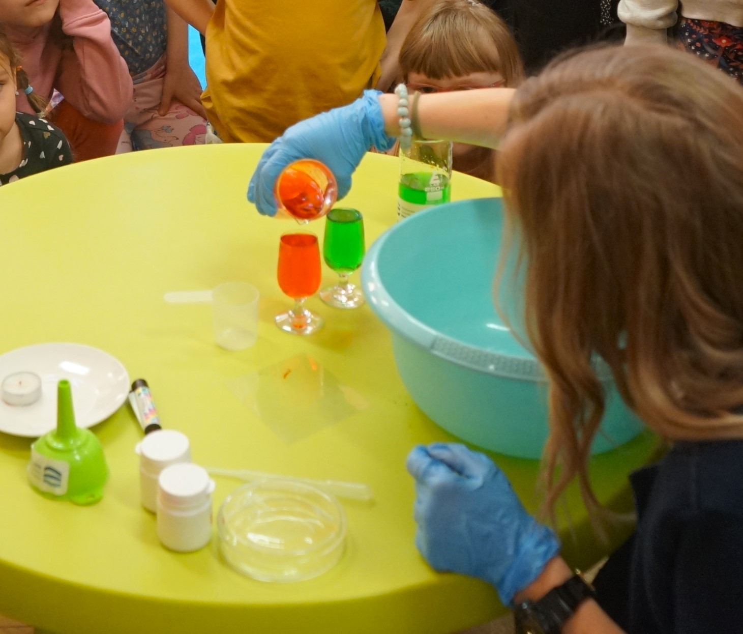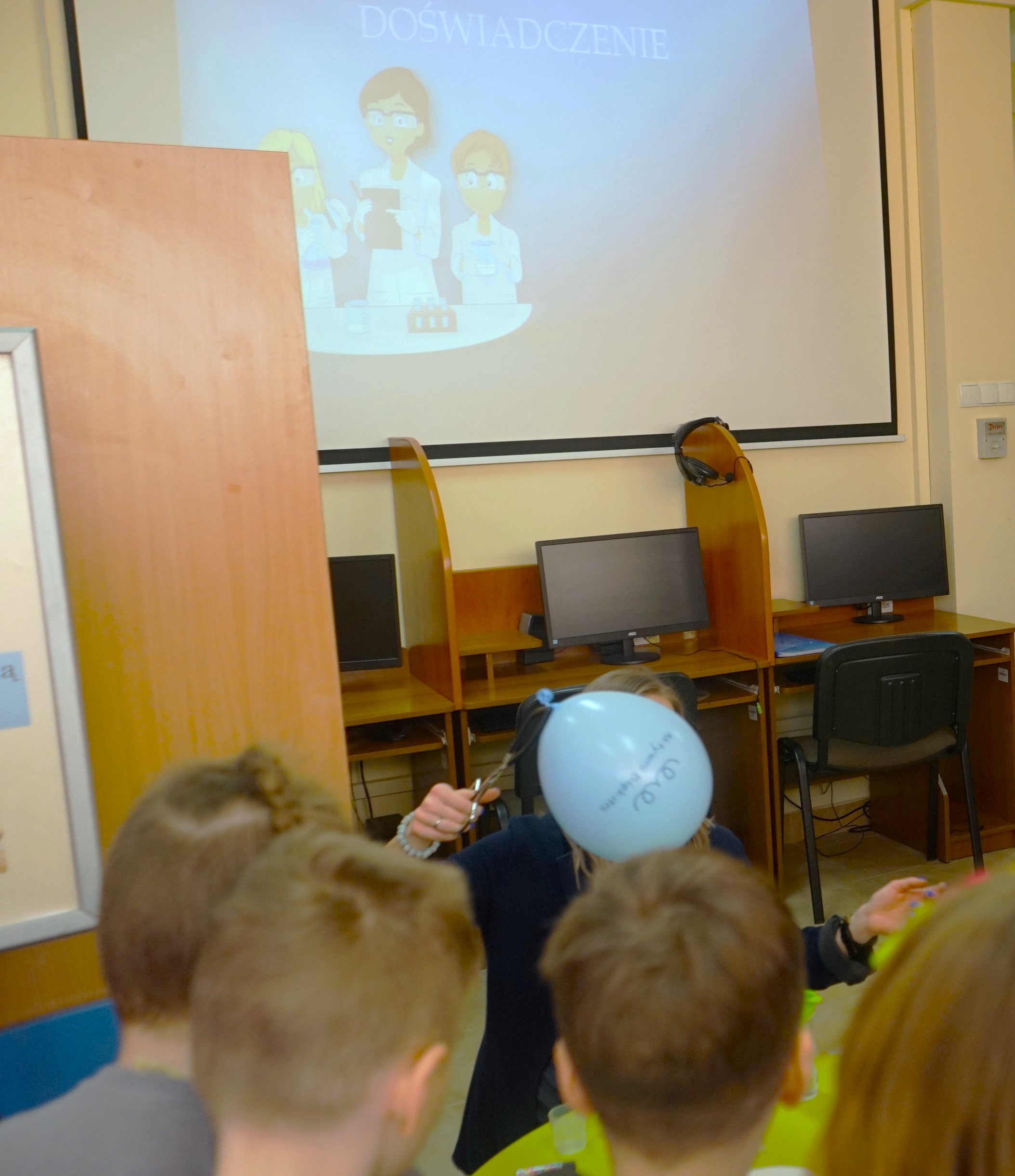 Dodatkowo, wszyscy brali aktywny udział w wodnych eksperymentach, które rozbudzały wyobraźnię i pokazywały, czym jest woda i jakie ma właściwości. Podpalany balon z wodą wywołał lawinę radości, wszyscy w napięciu oczekiwali – kiedy w końcu pęknie!? I … pomimo dużego płomienia, osmolenia, ku rosnącym zdziwieniu dzieci - to nie nastąpiło! Z wielkim niedowierzaniem odkryliśmy, że balon napełniony wodą nie pęka. Dlaczego? Odpowiedź jest prosta: balon jest wykonany z gumy – dobrego przewodnika ciepła, które oddaje wodzie – co powoduje, że staje się „balonem ognioodpornym”.