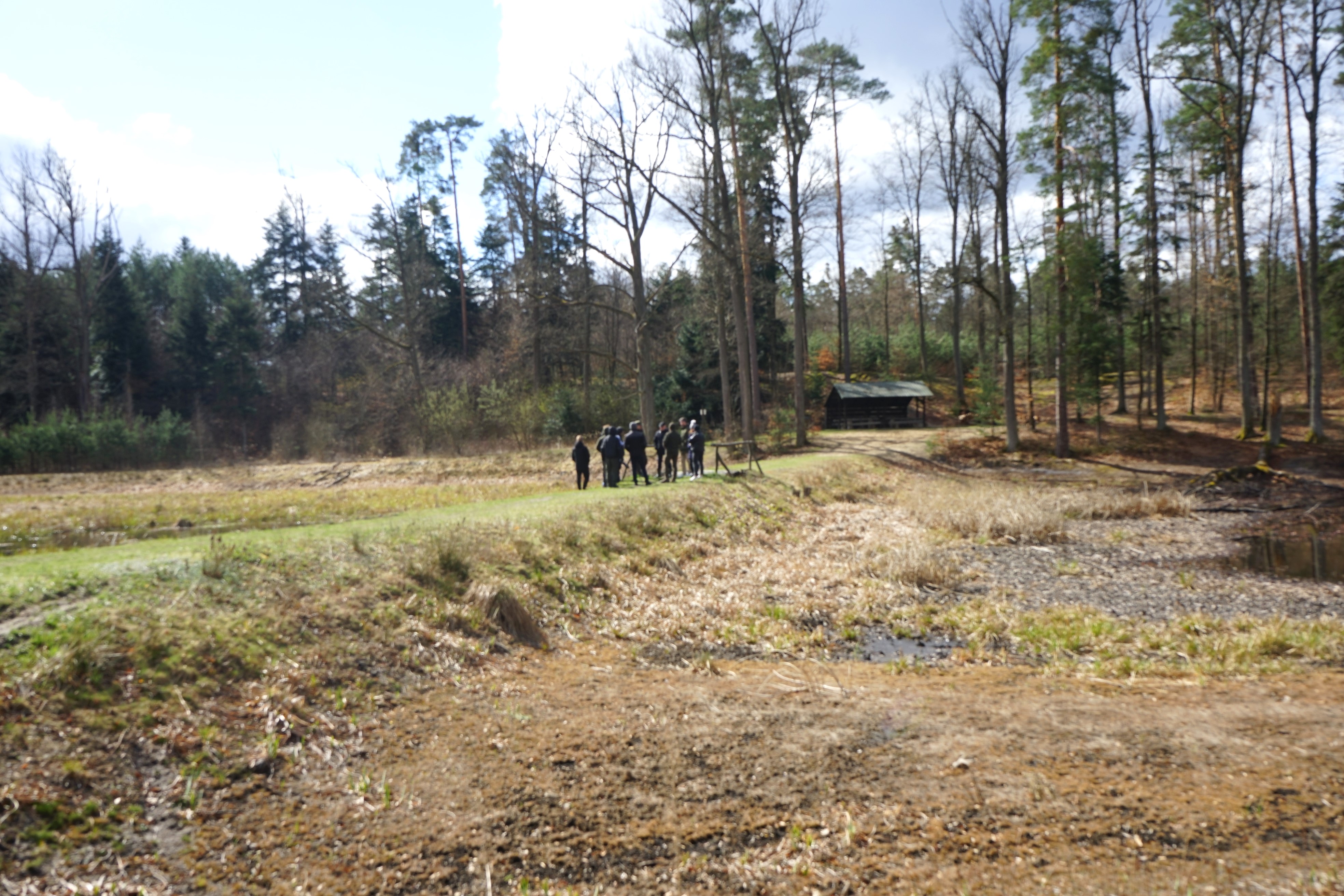 Po części merytorycznej uczestnicy spotkania udali się w teren, aby na miejscu omówić i zobaczyć funkcjonowanie zbiorników retencyjnych w lesie oraz porozmawiać o ich roli w lokalnym bilansie wodnym i przeciwdziałaniu skutkom suszy.