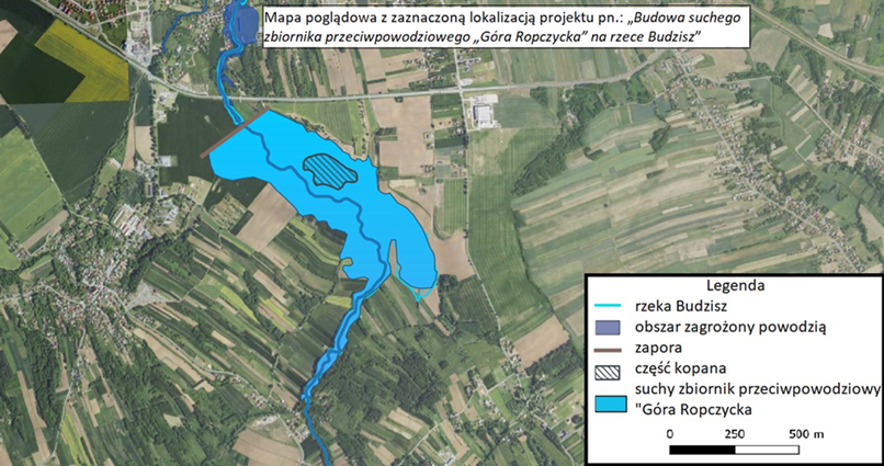 RZGW w Rzeszowie w dniu 5 września 2024 r. zawarł ze Spółką BUDIMEX umowę na wykonanie suchego zbiornika przeciwpowodziowego „Góra Ropczycka”, zlokalizowanego na rzece Budzisz, którego zadaniem będzie ochrona przeciwpowodziowa Sędziszowa Młp. Wartość planowanych do wykonania robót wynosi łącznie 32, 86 mln zł. z czego 27,93 mln zł. to dotacja ze środków Unii Europejskiej, którą Wody Polskie pozyskały z programu operacyjnego województwa podkarpackiego pn. „Fundusze Europejskie dla Podkarpacia na lata 2021-2027”. Rozpoczęcie prac przygotowawczych nastąpiło we wrześniu i potrwają one do marca 2027.