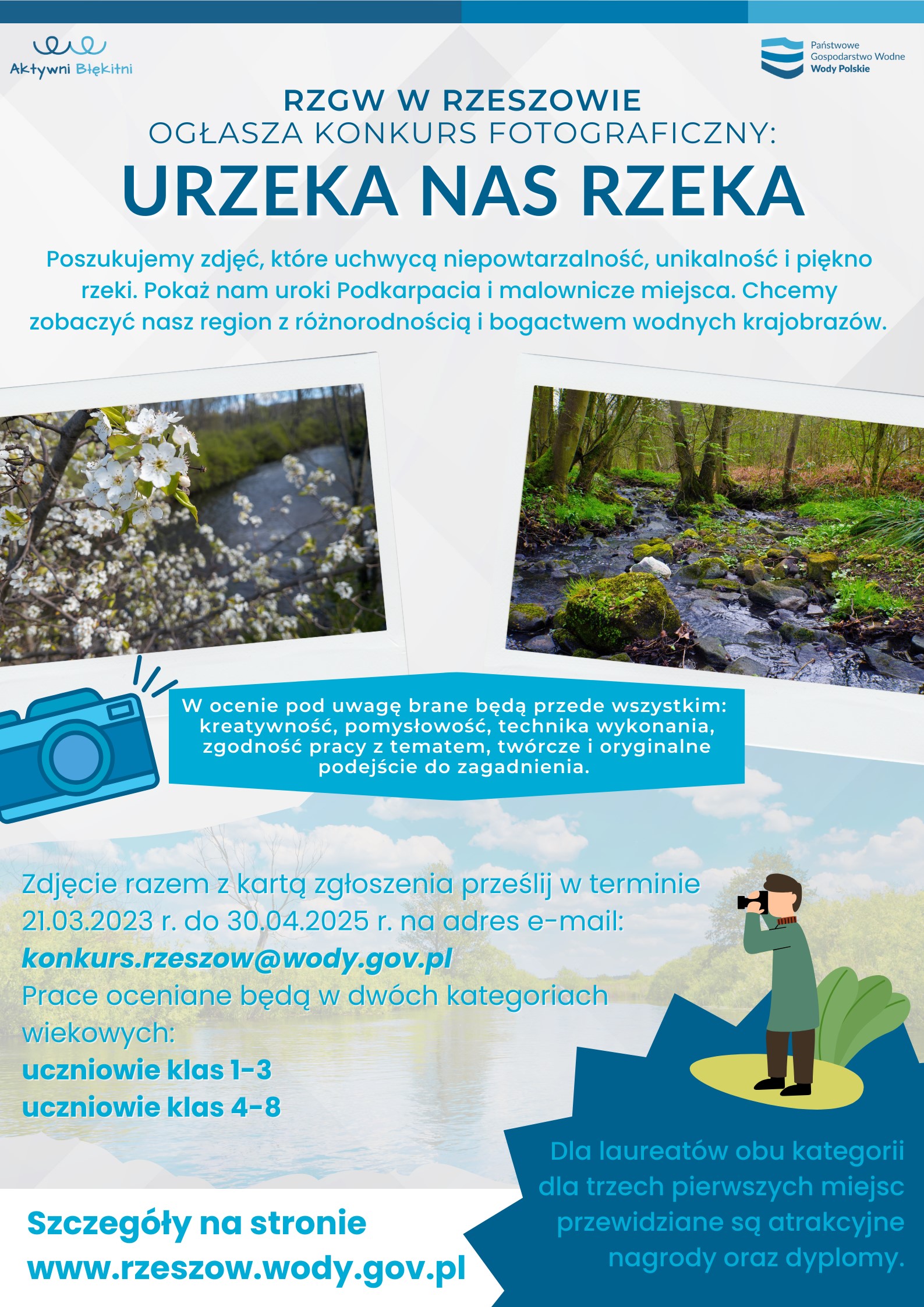 Zdjęcie razem z kartą zgłoszenia prześlij w terminie 21.03.2023 r. do 30.04.2025 r. na adres e-mail: konkurs.rzeszow@wody.gov.pl.