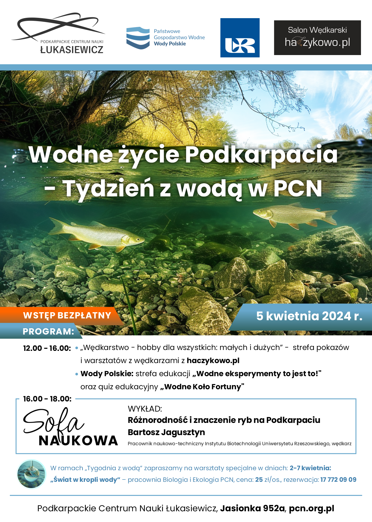 Wody Polskie edukują i promują wiedzę o zrównoważonej gospodarce wodnej, szczególnie w zakresie ochrony środowiska, ochrony przeciwpowodziowej i zapobieganiu skutkom suszy, a także dbałości o wodę i znajomości zasad bezpiecznej rekreacji wodnej. Edukacja wodna to przyszłość, dlatego Wspólnie z Podkarpackim Centrum Nauki „Łukasiewicz” połączyliśmy siły, by zrealizować wyjątkowe wydarzenie pod nazwą „Wodne życie Podkarpacia”.
