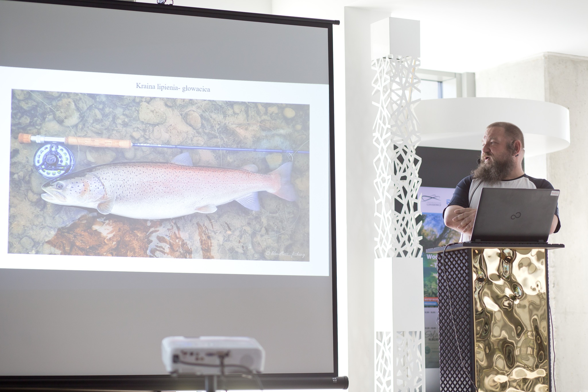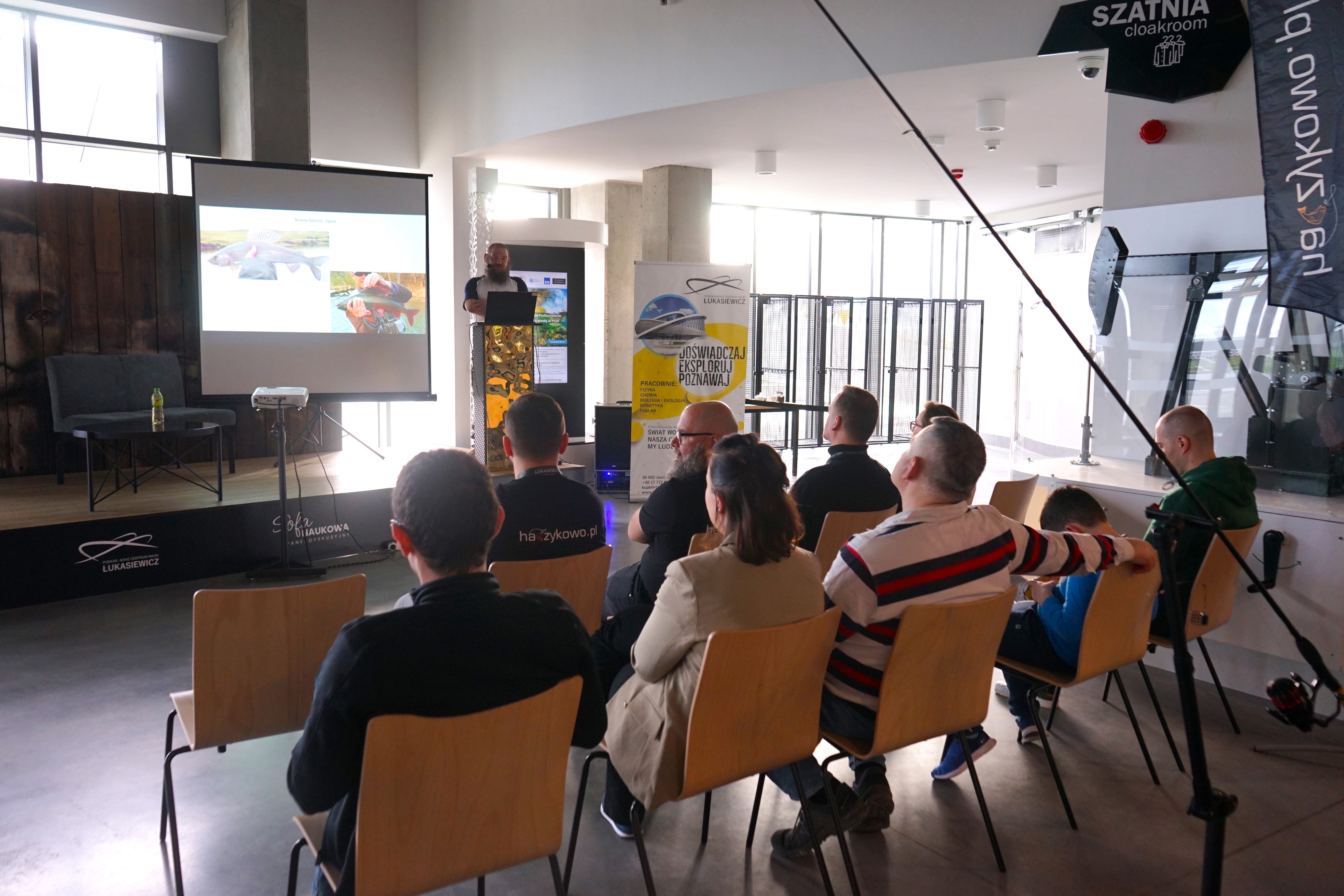 Z kolei po godz. 16:00, w ramach „Sofy naukowej”, szeroko na temat „Różnorodności i znaczenia ryb na Podkarpaciu” opowiedział autorytet w świecie nauki – Pan Bartosz Jagusztyn, pracownik naukowo-techniczny Instytutu Biotechnologii Uniwersytetu Rzeszowskiego. Okraszając wykład wieloma ciekawostkami wprowadził on uczestników spotkania w świat ryb, które zamieszkują wody na Podkarpaciu. Przyjrzeliśmy się bliżej ich różnorodności i roli, jaką odgrywają w środowisku. Ekspert przedstawił także poszczególne ekosystemy wodne w naszym regionie. Dzięki temu słuchacze mogli zdobyć nową lub utrwalić posiadaną wiedzę na temat głównych gatunków ryb, które występują w naszych regionalnych wodach.