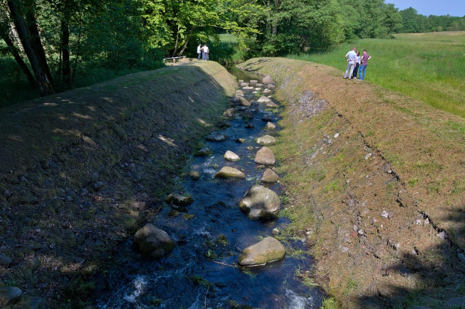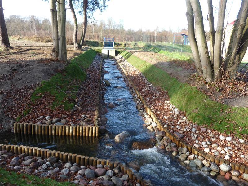 The LIFE11 NAT/PL/000424 project "Construction of a blue ecological corridor along the valley of the Rega River and its tributaries" was implemented by the West Pomeranian Board of Land Reclamation and Water Facilities (ZZMiUW) in Szczecin, and then by the State Water Holding Polish Waters (PGW WP), from June 2012 to June 2023. The substantive assumptions of the project were based on the results of monitoring studies as part of nature inventories, development of Plans for Protection Tasks of Natura 2000 areas and knowledge of partners supporting the project, including the Co-beneficiary - the Regional Directorate for Environmental Protection in Szczecin, the Polish Angling Association, the Society of Friends of the Rega River, as well as local governments and forest districts administering Natura 2000 areas in the Rega basin. The main objective of the project was to improve the ecological status of habitats characteristic for the occurrence and reproduction of bienvironmental fish, in particular sea trout (Salmo trutta) and Atlantic salmon (Salmo salar). As part of the Project, 23 fish ladders were built, thanks to which the entire Rega river catchment was cleared, which guarantees the achievement of the assumed effects in the form of free migration of all aquatic organisms. The created roadside ecological corridor creates a common network of corridors covering the Rega riverbed and its tributaries, fully connecting the valuable Natura 2000 habitat areas of the Rega River Basin. The achieved effect in the form of ensuring continuity in the Rega river basin, enabling free migration of fish up and down the river, led to the appearance of bi-environmental fish above Łobez, which proves the proper functioning of fish ladders. The spawning grounds enable an increase in the number of spawning nests, which in the long term will lead to the successive revival of natural populations of salmonids. The banks of the Rega River were planted with seedlings of alders, ash trees and willows, which improves the quality of ichthyofauna habitats by lowering the water temperature in the rivers, thanks to the reduction of excessive sunlight. Fish migration is recorded by two monitoring devices placed in fish ladders in Płoty and Łobez, and the safety of migrating fish in front of the turbines of the power plant is protected by four deterrent barriers installed at the largest power plants. As part of the fight against poaching, equipment and equipment were purchased to supply the Social Fisheries Guard to perform field activities.