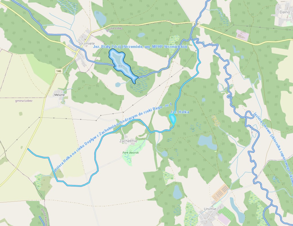 Jeziora Helka na cieku Dopływ z Zachełmia uchodzącym do rzeki Rega - nr 1