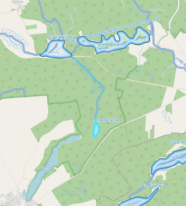 Jeziora Kościelne na cieku bez nazwy uchodzącym do rzeki Pęzinka - nr 1 (I.18.32)