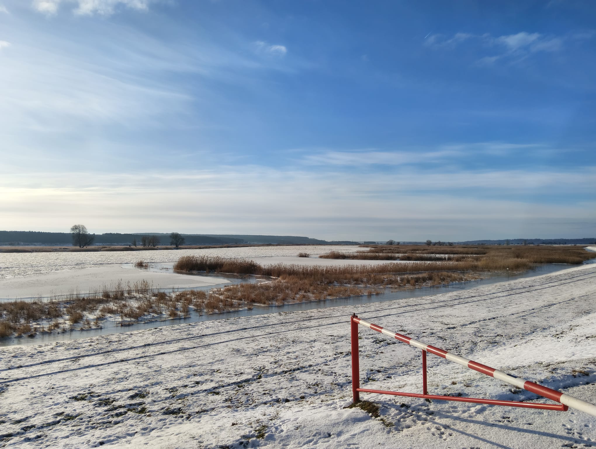 - W Gozdowicach przy ujściu Warty na odcinku do miejscowości Bielinek (pomiary wodowskazów na wysokości km 645 i km 672) notujemy zagęszczenie śryżu lodowego w postaci luźno skupionych ze sobą krążków lodu, płynących nurtem rzeki.