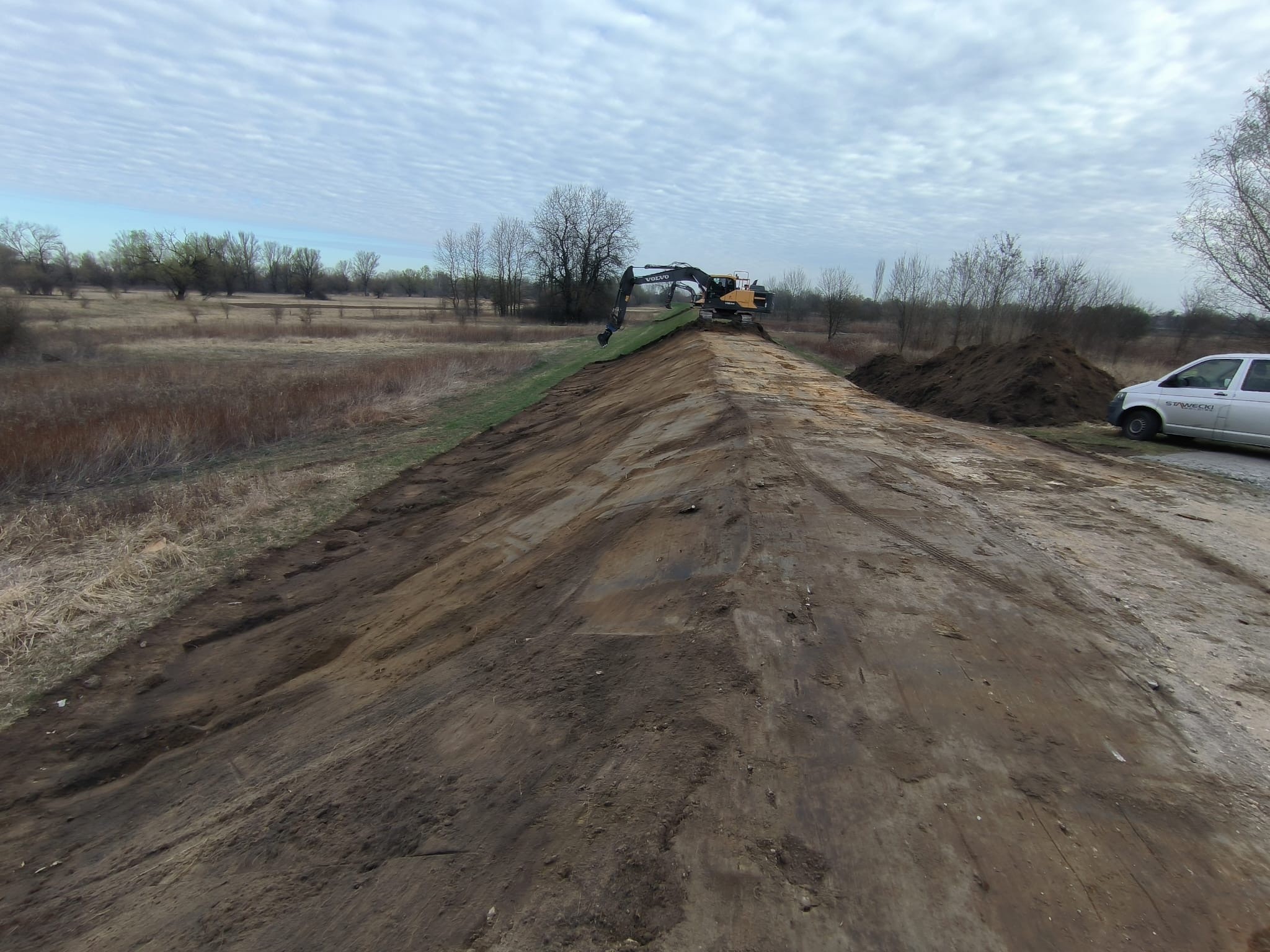 - Uzupełnienie lokalnych ubytków w konstrukcji nasypów ziemnych na istniejących przejazdach wałowych wraz z wykonaniem nowej nawierzchni,