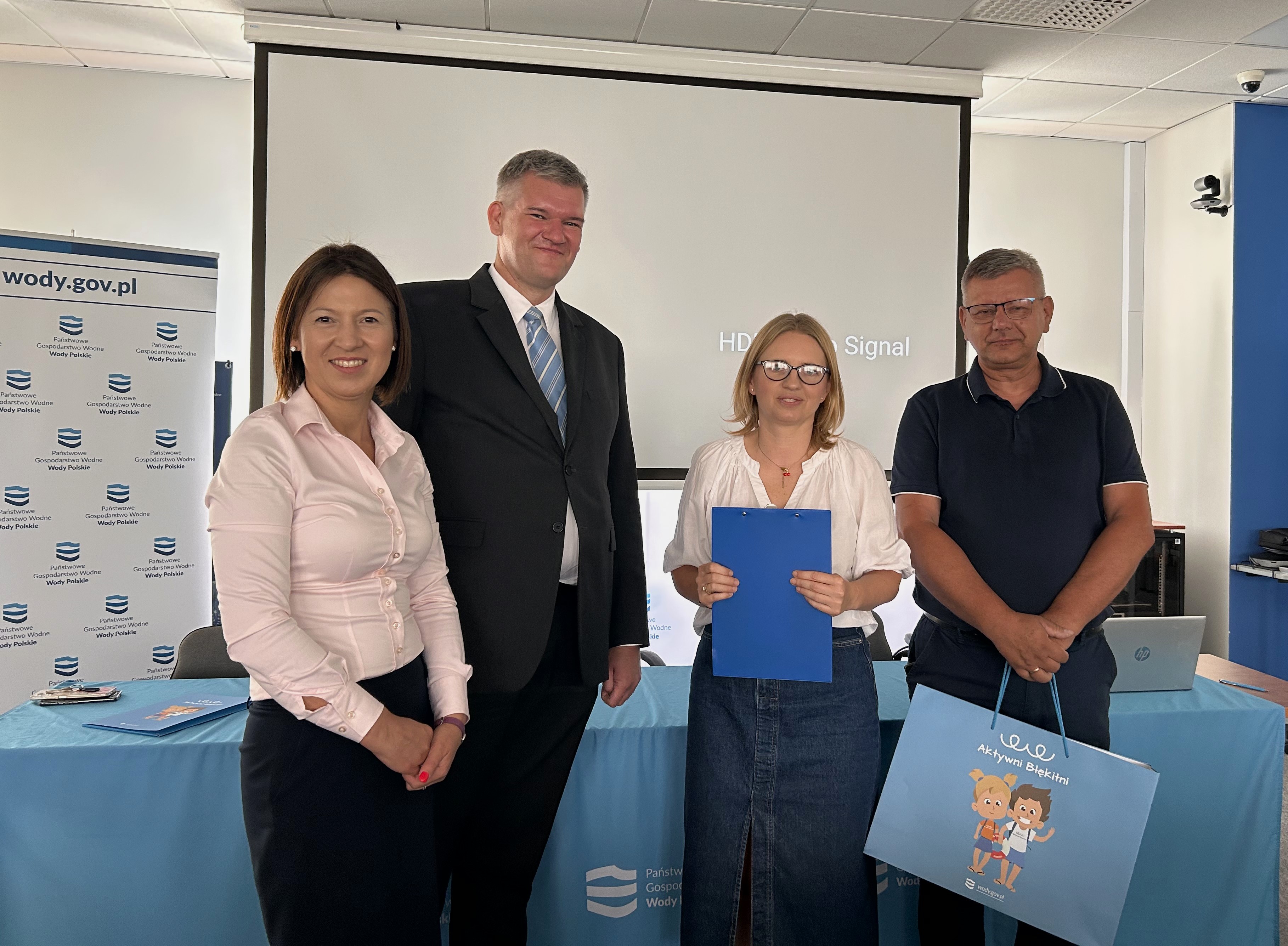 Aktywni Błękitni to program edukacyjny dla szkół podstawowych realizowany od 2019 roku. Misją programu jest promowanie wiedzy o zrównoważonej gospodarce wodnej, szczególnie w zakresie ochrony środowiska, ochrony przeciwpowodziowej i zapobieganiu skutkom suszy, a także dbałości o wodę i znajomości zasad bezpiecznego korzystania z rekreacji wodnej. Naszym celem jest wykształcenie wśród dzieci i młodzieży poprawnych nawyków i postaw, które wraz z otrzymaną wiedzą, w przyszłości będą mogły wykorzystywać i przekazywać dalej przyczyniając się do ochrony środowiska.