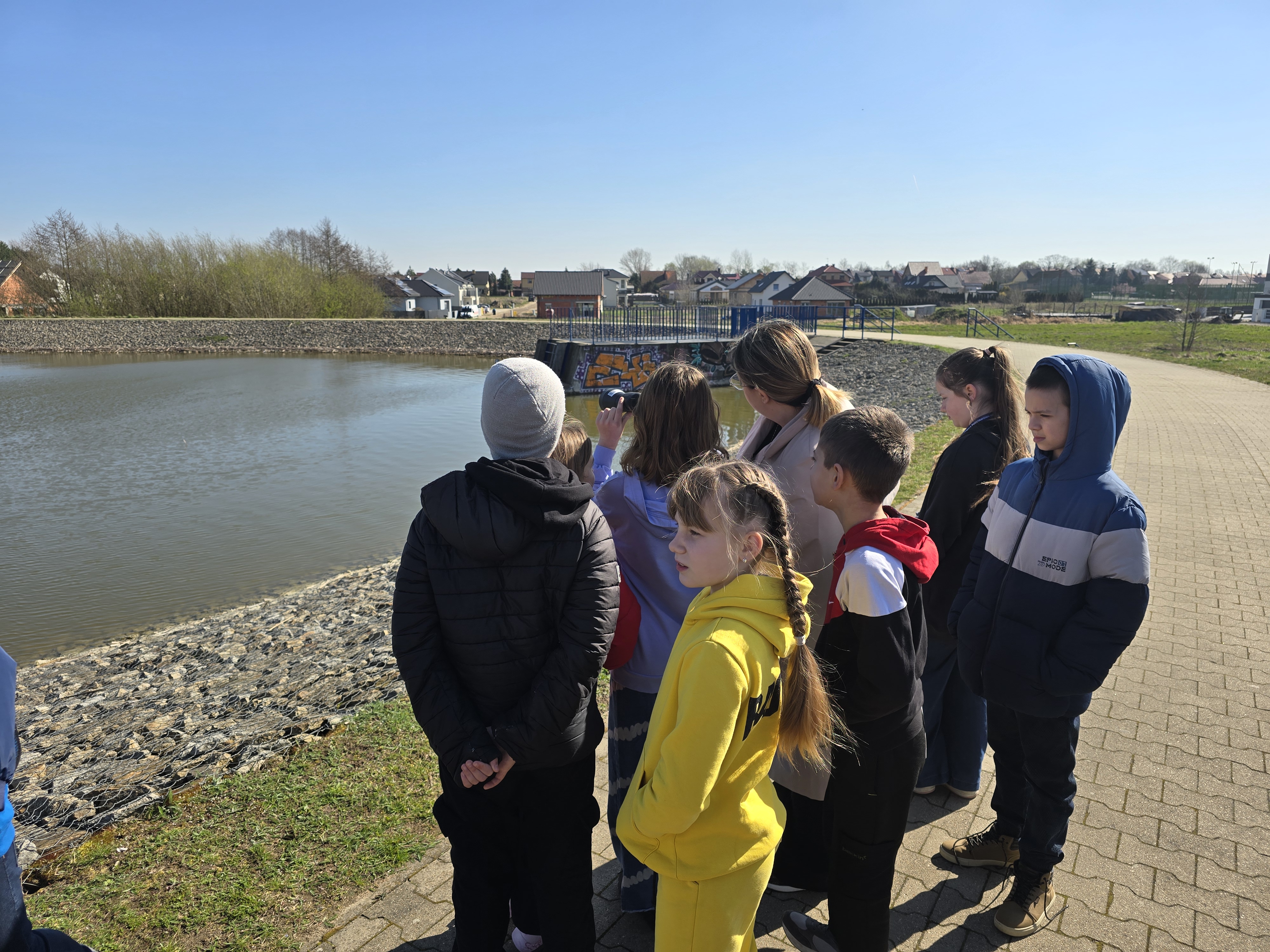 26 marca uczniowie Szkoły Podstawowej nr 10 im. Świętego Jana Pawła II w Lesznie, dzięki włączeniu się do projektu Aktywni Błękitni, mieli niepowtarzalną okazję poznać zasady działania zbiornika Rydzyna. Dzieci przyswoiły podstawowe dane na temat obiektu i sposób, w jaki za jego pomocą można magazynować wodę, gdy występuje jej nadmiar po to, aby móc ją potem wykorzystać w okresach suszy. Dzięki temu młodzi hydrolodzy dowiedzieli się o dwóch niezwykle ważnych funkcjach zalewu dla lokalnej społeczności – retencjonowanie wody i ochrona przeciwpowodziowa. Uczniowie odczytali też poziom wody z łaty wodowskazowej, a także poznali działanie budowli upustowej.