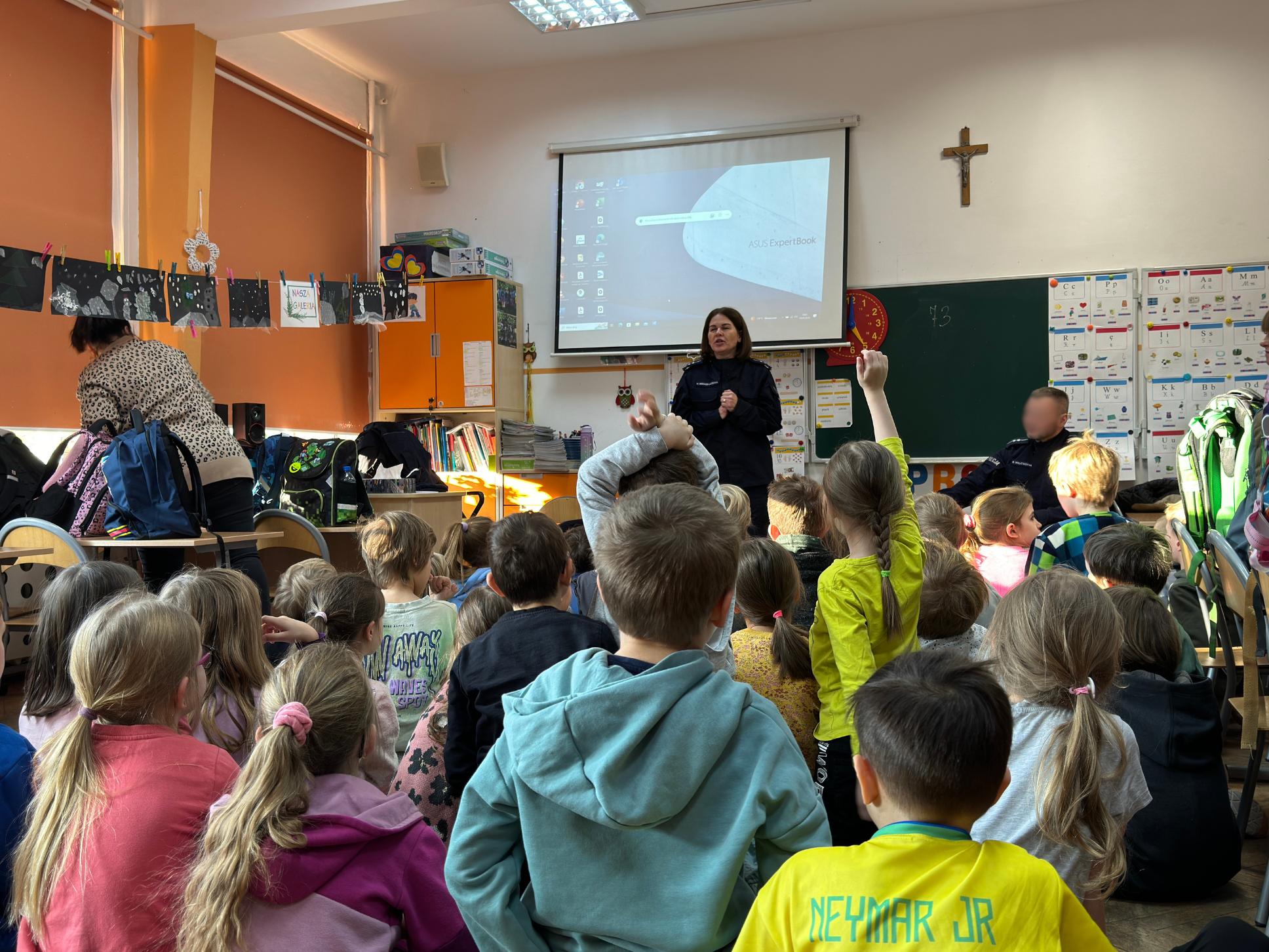 Uczniowie uświadomili sobie, że korzystając z uroków sportów zimowych należy unikać miejsc niebezpiecznych, takich jak stawy, jeziora i rzeki. Mimo sprzyjających warunków należy pamiętać, że pokrywa lodowa potrafi być zdradliwa, co potwierdzają powtarzające się rokrocznie wypadki załamania lodu pod bawiącymi się dziećmi, łyżwiarzami lub wędkarzami. Dlatego każde wejście na zamarznięty akwen może skończyć się tragicznie. Unikniemy niebezpieczeństwa tylko wtedy, gdy nie będziemy wchodzić na pokryty lodem zbiornik wodny. Takie podejście daje największą gwarancję nie tylko dużej satysfakcji ze spędzania czasu wolnego nad wodą, ale i bezpieczeństwa. Policjanci wyjaśnili również, jak reagować, gdy to pod kimś innym załamie się lód. Prócz tego mundurowi mówili o bezpieczeństwie w okresie wakacyjnym, jak zdradliwa potrafi być głębokość przy falochronie i w jaki sposób pomóc osobie tonącej.