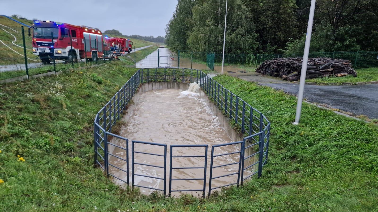 Przepompownia wód opadowych Siestrzechowice na Opolszczyźnie działa pełną parą. Obiekt pompuje nadmiar wód spływających z okolicznych rowów do zbiornika Nysa, chroniąc przed podtopieniami. Sama przepompownia nie została jeszcze podtopiona dzięki strażakom, którzy odpompowują napierającą wodę.