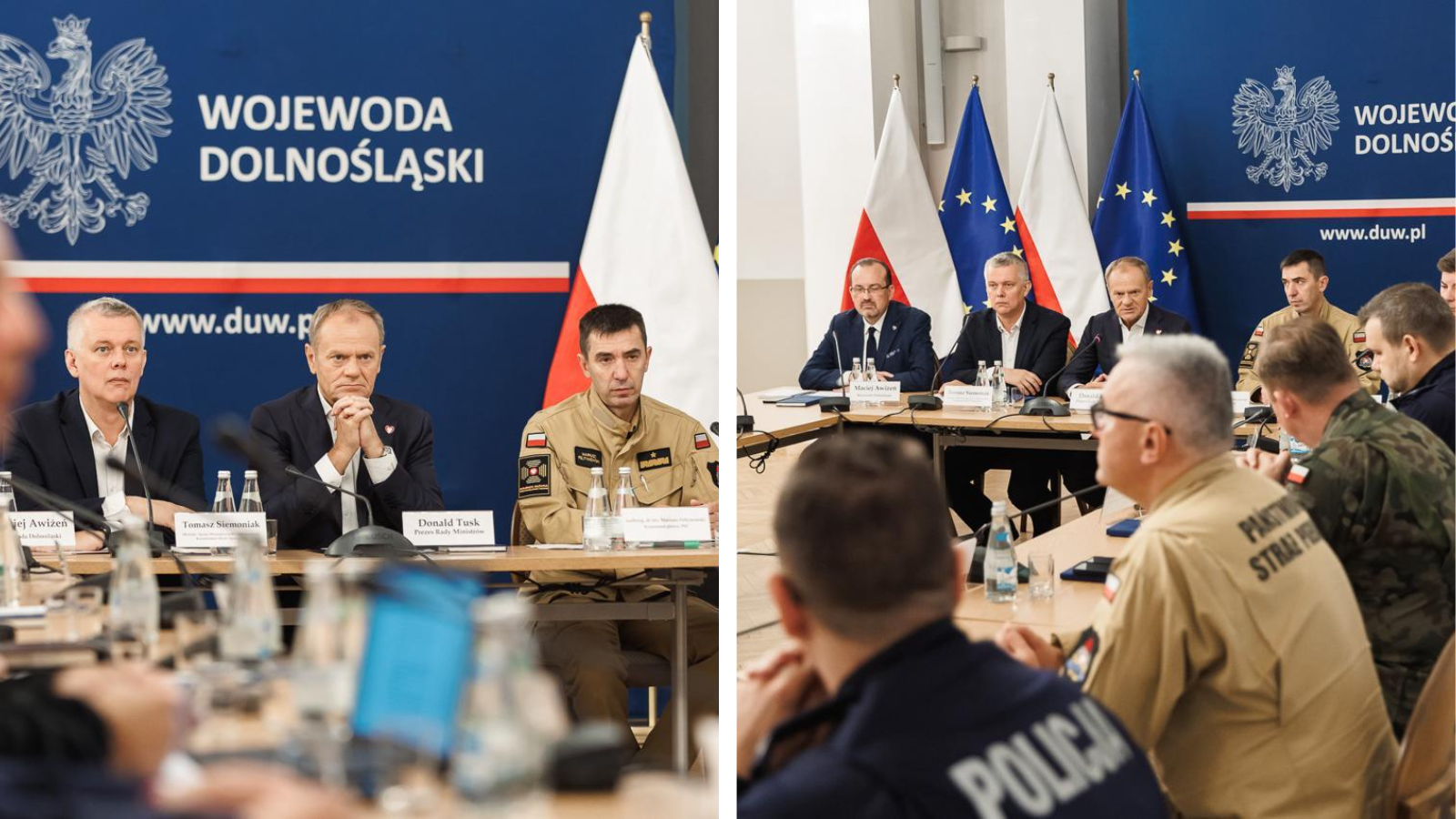 Dziś we Wrocławiu odbyło się posiedzenie sztabu kryzysowego z udziałem premiera Donalda Tuska, ministrów: Tomasza Siemoniaka, Władysława Kosiniaka-Kamysza, Dariusza Klimczaka, Wiesława Leśniakiewicza, wojewodów, służb, władz lokalnych, a także Prezes Wód Polskich - Joanną Kopczyńską i Zastępcą Dyrektora RZGW we Wrocławiu ds. Ochrony Przed Powodzią i Suszą – Jackiem Drabińskim.