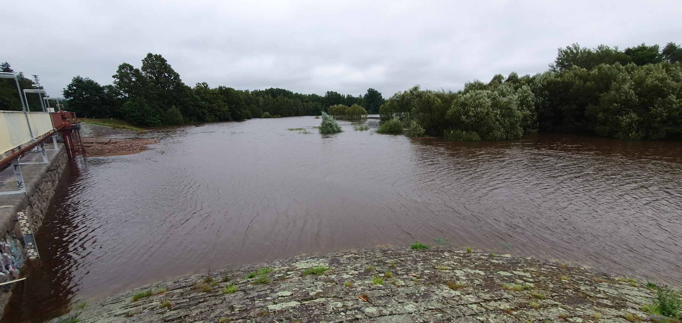 Przed południem zbiornik Krosnowice na potoku Duna wypełnił się w 100% i zaczął działać kaskadowy przelew powierzchniowy. Woda opada poniżej stanu krytycznego, co może pozwolić na ponowną możliwość sterowania zrzutami.