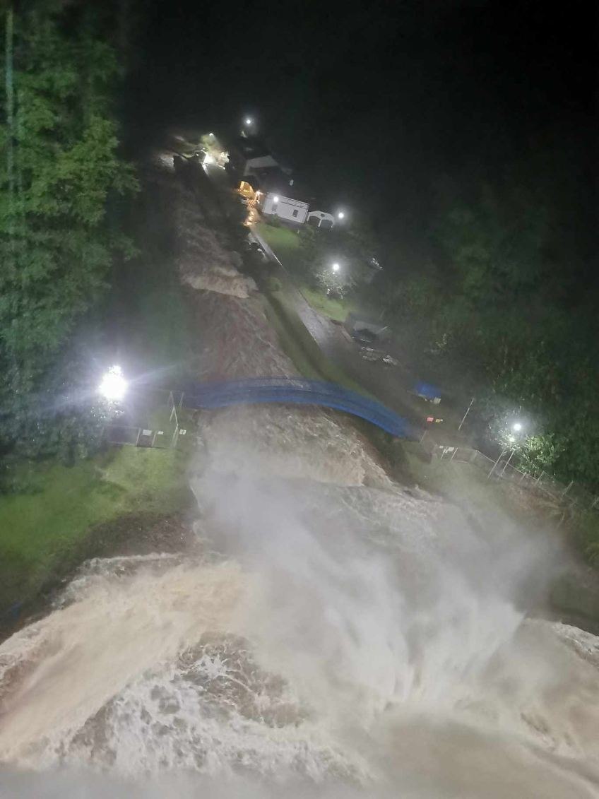 Zbiornik Stronie Śląski wczoraj osiągnął maksymalne piętrzenie. O godzinie 21:13 woda zaczęła przelewać się przelewem górnym zbiornika. Pracownicy pracujący na zbiorniku ewakuowali się z miejsca jako ostatni.