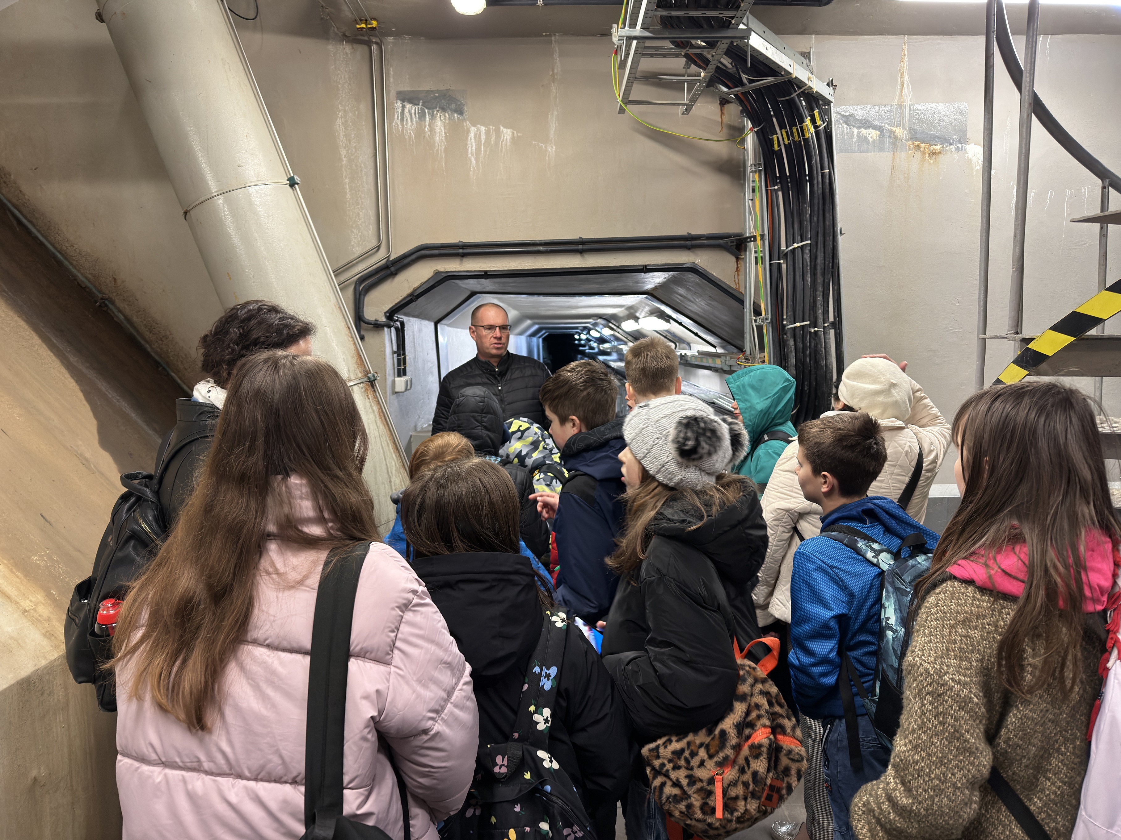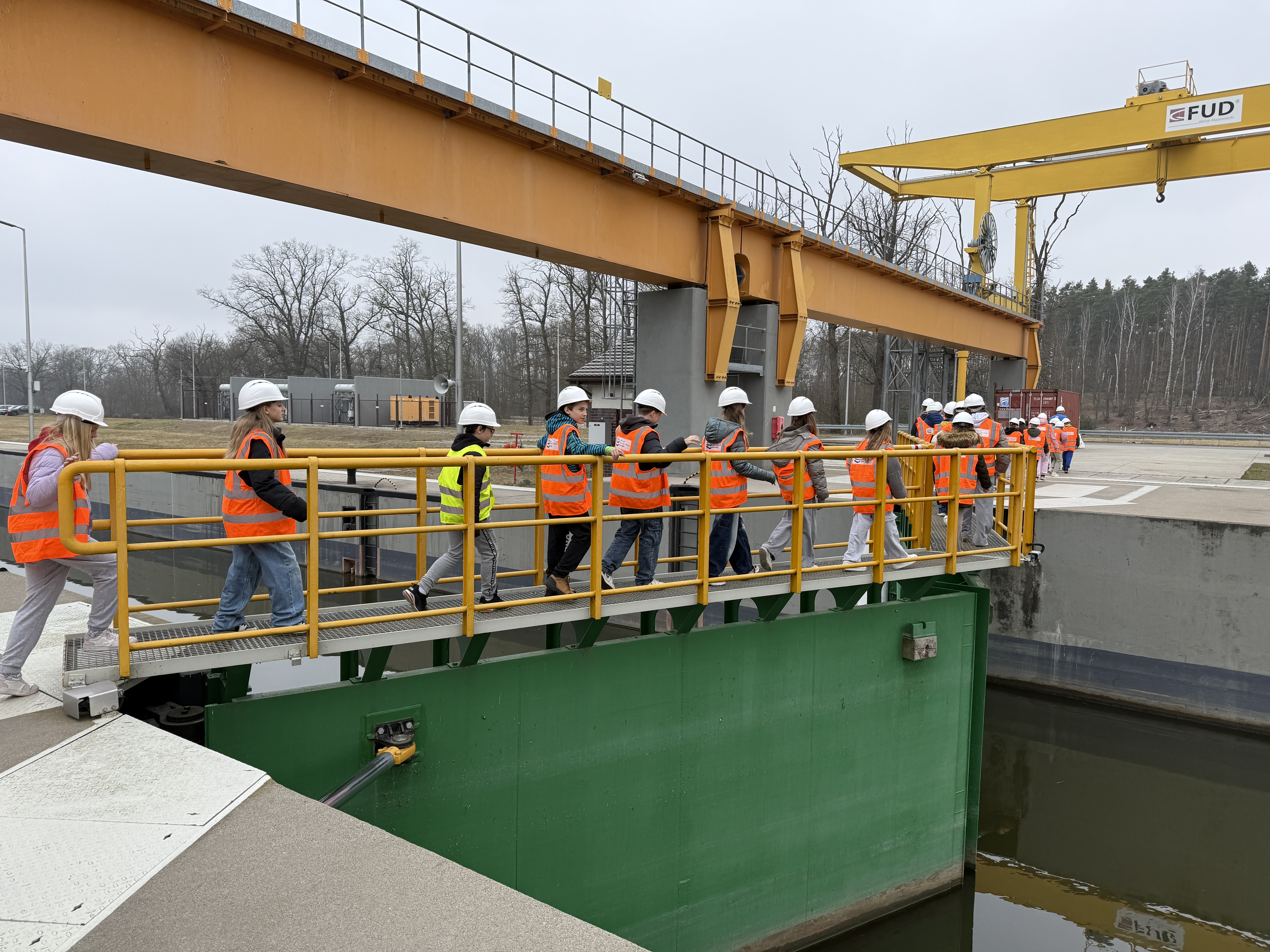 Później czekała na nich prawdziwa gratka – przejście „suchą stopą” pod dnem Odry. Pod taflą wód rzeki funkcjonuje specjalna galeria komunikacyjna. To właśnie tym korytarzem, biegnącym po dnie Odry, można poruszać się pomiędzy brzegami tak, by w łatwiejszy sposób docierać do kładki technologicznej, śluzy żeglugowej czy przepławki dla ryb i wielu urządzeń hydrotechnicznych.