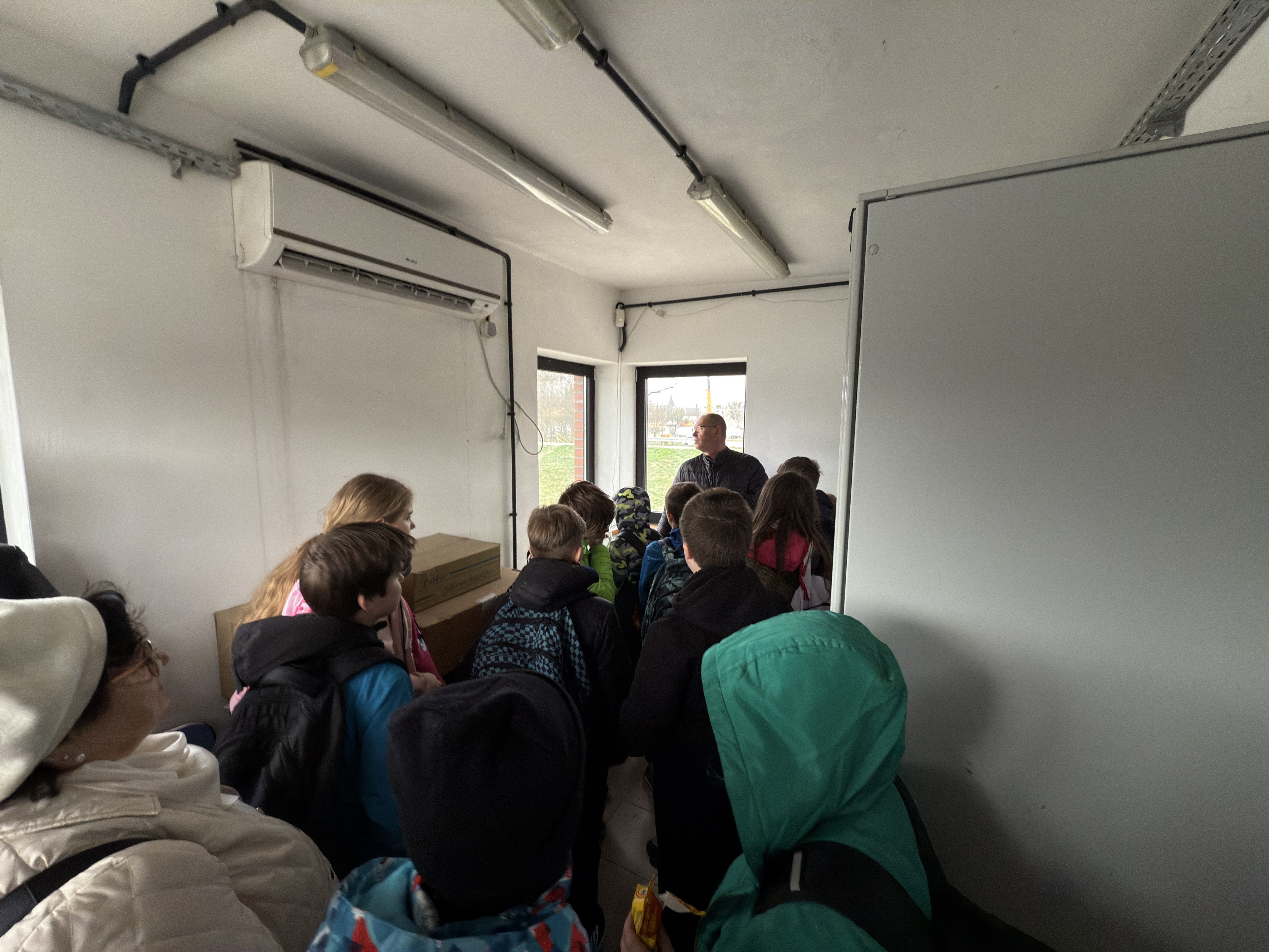 Później przyszła pora na weryfikację zgromadzonej wiedzy w praktyce. Aktywni na własne oczy zobaczyli trzyprzęsłowy jaz klapowy i śluzę, przez którą przepłynęła jednostka Wód Polskich. Dzieci przekonały się też, jak działa przepławka. Stopień wodny Malczyce posiada trzy konstrukcje, umożliwiające rybom swobodną migrację. Jedną z przepławek jest bystrotok kaskadowy, zbudowany z materiałów naturalnych: głazów i narzutu kamiennego. Występuje tutaj również rampa migracyjna dla zwierząt lądowo-wodnych. Następnie, w odrębnym pomieszczeniu, uczniowie mogli przez specjalną szybę zajrzeć pod powierzchnię wody i obserwować pływające tam ryby.