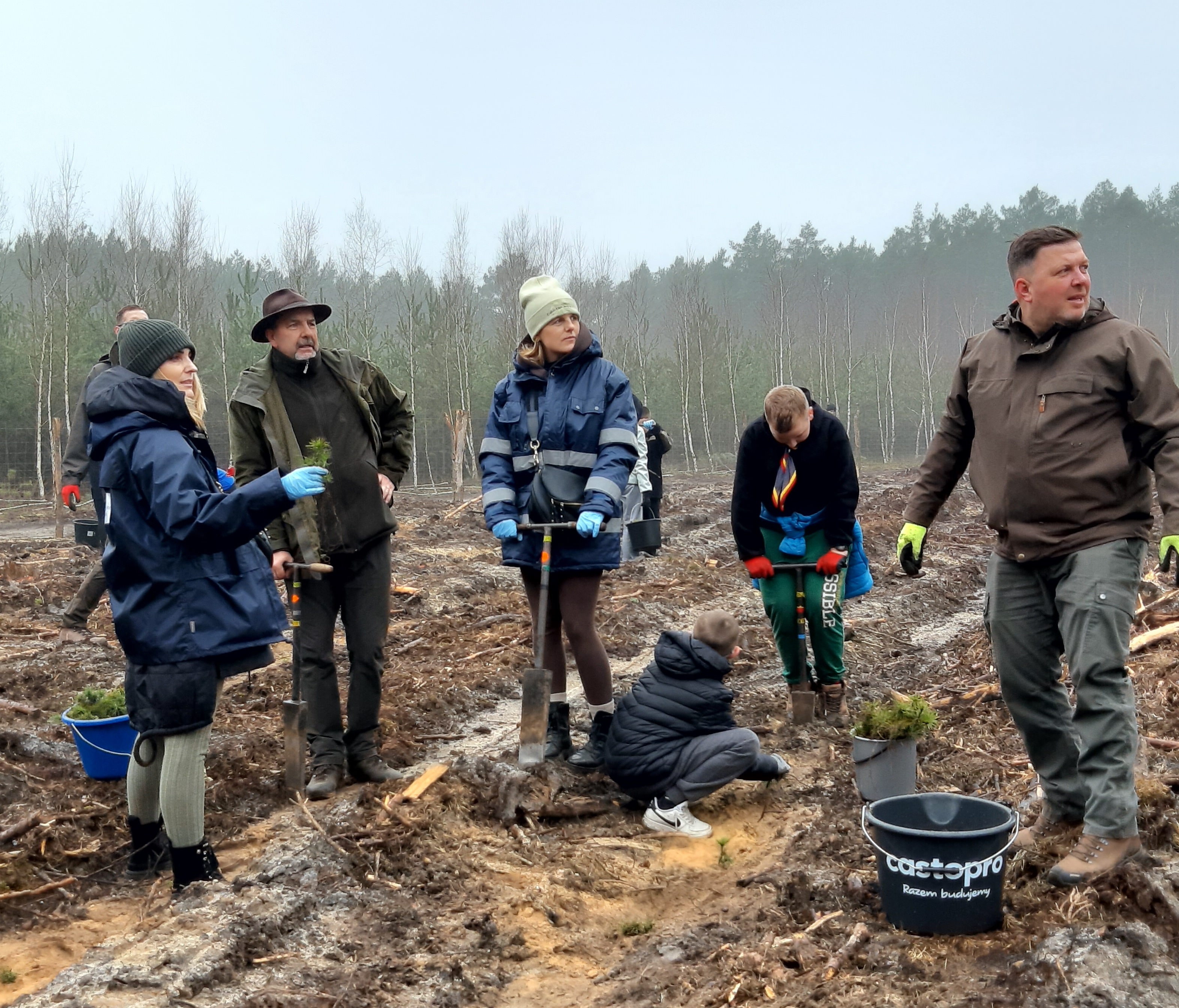 Po krótkim instruktażu przeprowadzonym przez leśniczego zasadzono 1200 sosen na powierzchni 30 arów w niedalekiej odległości od cieku Moczar. Takie działania mają ogromne znaczenie nie tylko dla lokalnego systemu, ale także dla całej gospodarki wodnej.