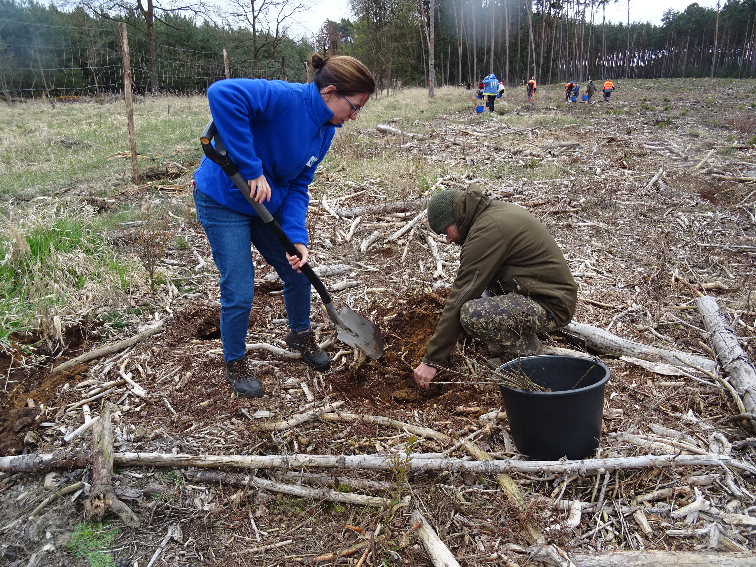 Nasi pracownicy z Nadzoru Wodnego we Wschowie 3 kwietnia 2025 roku uczestniczyli w czwartej już akcji sadzenia lasu organizowanej wspólnie z Państwowym Gospodarstwem Leśnym Lasy Państwowe. Z ramienia naszego gospodarstwa w wydarzeniu wzięło udział 2 pracowników nadzoru, którzy przy słonecznej pogodzie przez kilka godzin wspólnie z leśnikami prowadzili sadzenie nowego lasu.