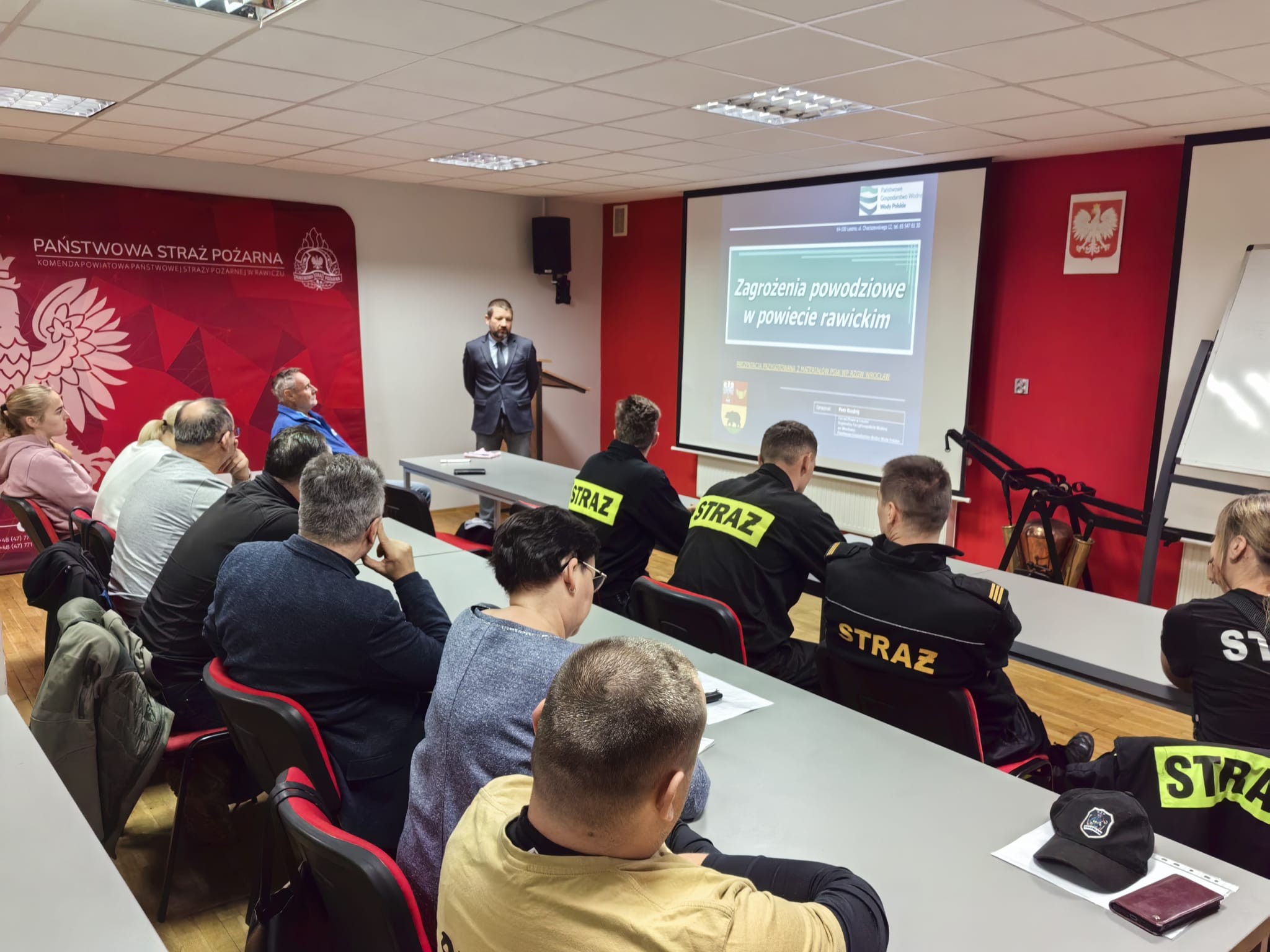 30 października 2025 r. w Komendzie Powiatowej Państwowej Straży Pożarnej w Rawiczu odbyło się szkolenie przeciwpowodziowe współorganizowane przez pracowników Wód Polskich z Zarządu Zlewni w Lesznie. Nabytą wiedzę wykorzystano w praktyce na obwałowaniach rzeki Masłówka - prawym dopływie Orli.